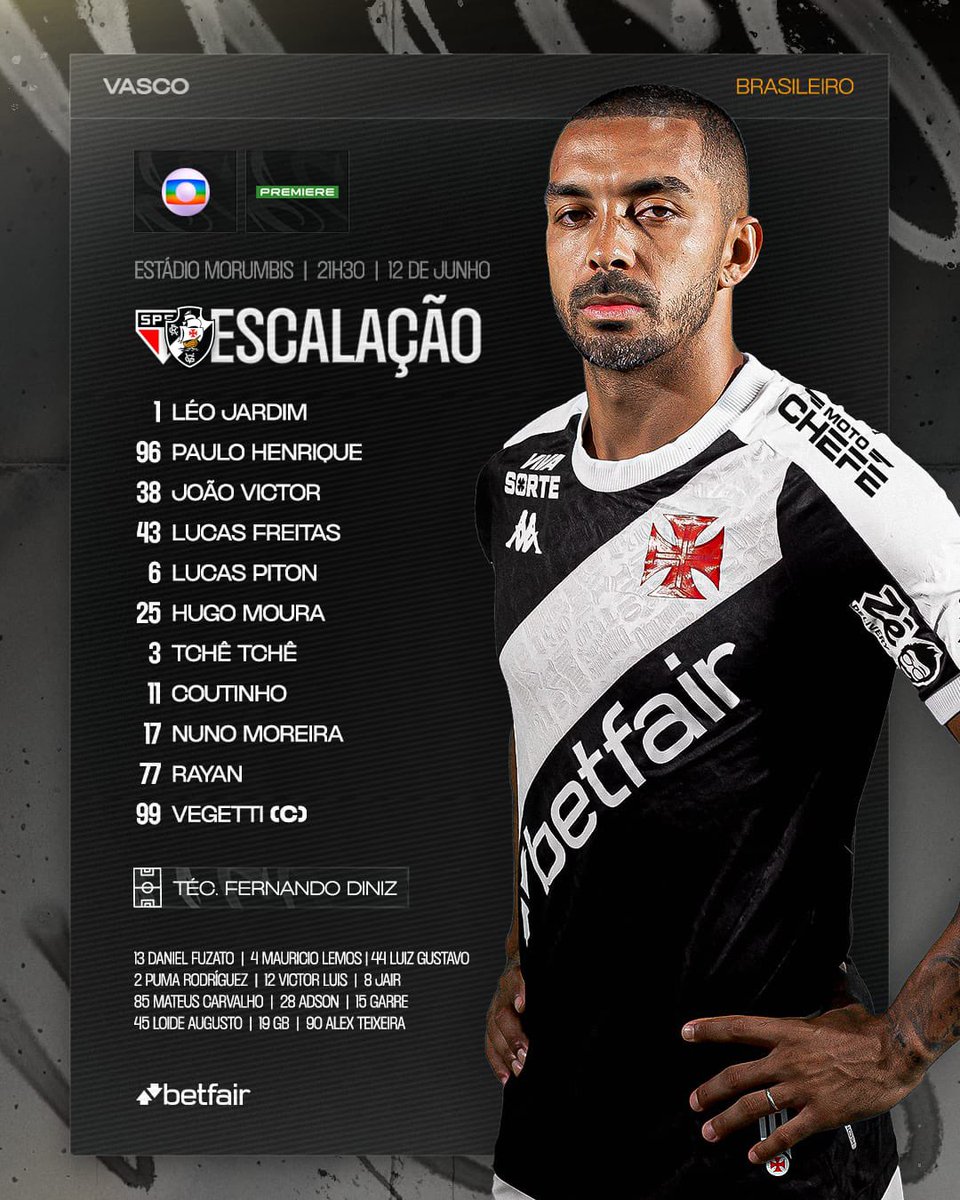 🎥 O Vasco da Gama está definido pelo técnico Fernando Diniz. 💢