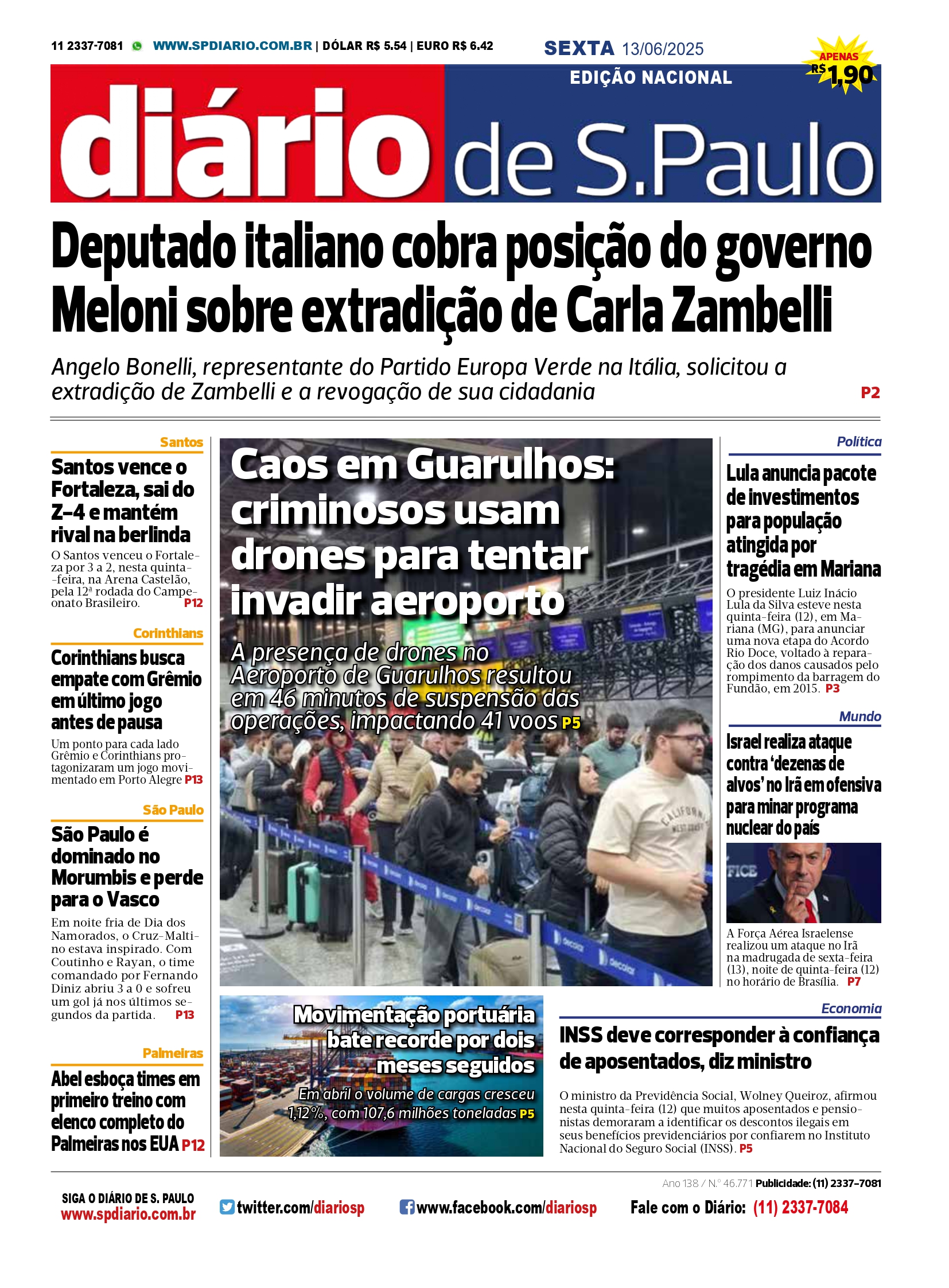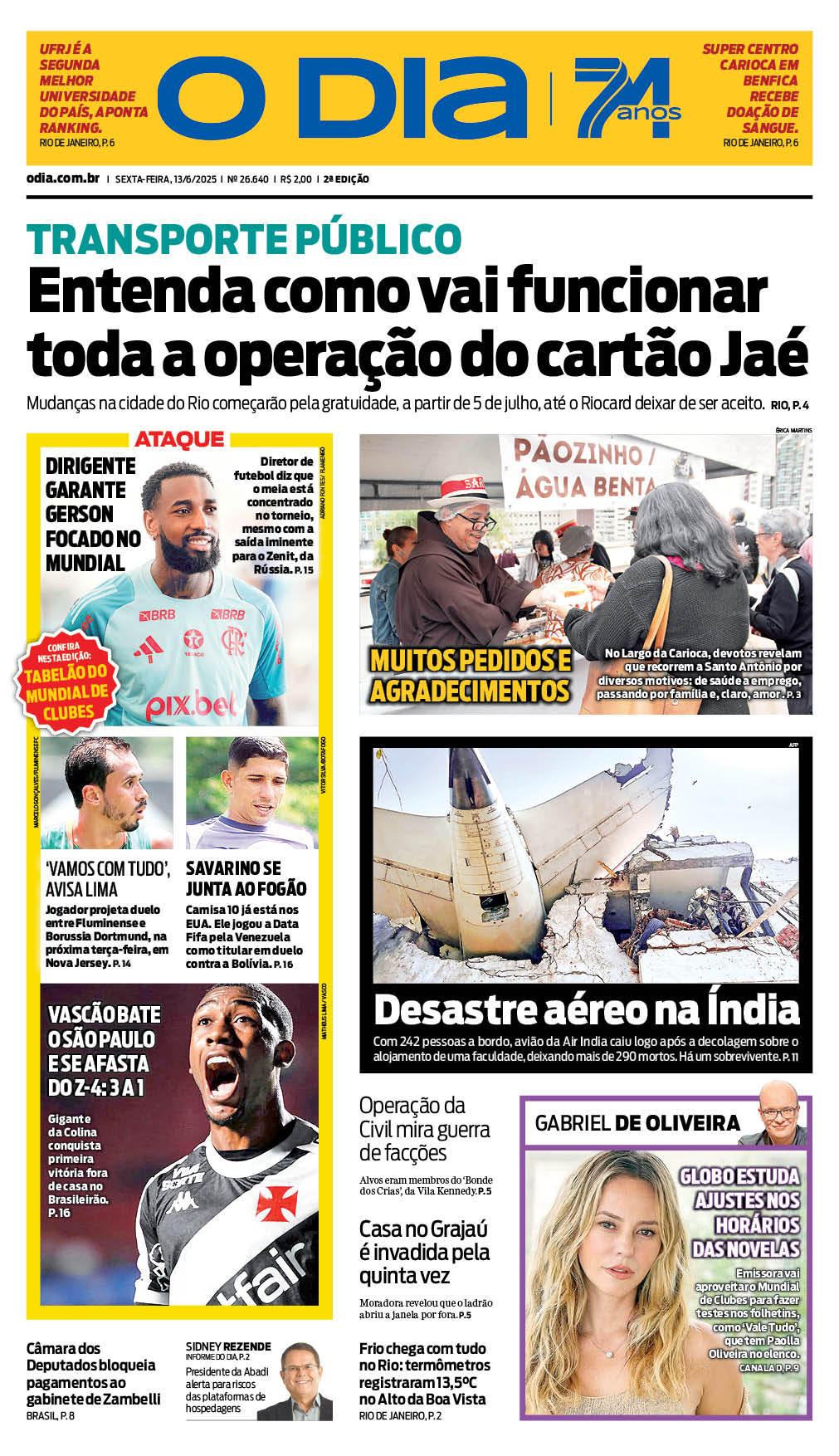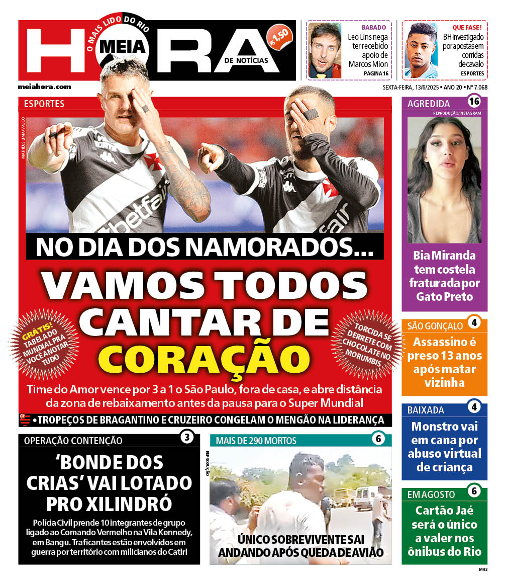 Pelo Campeonato Brasileiro, o Vasco derrotou o São Paulo por 3 a 1 no Morumbi, gols de Rayan, Nuno Moreira e Vegetti. Veja as capas dos jornais.