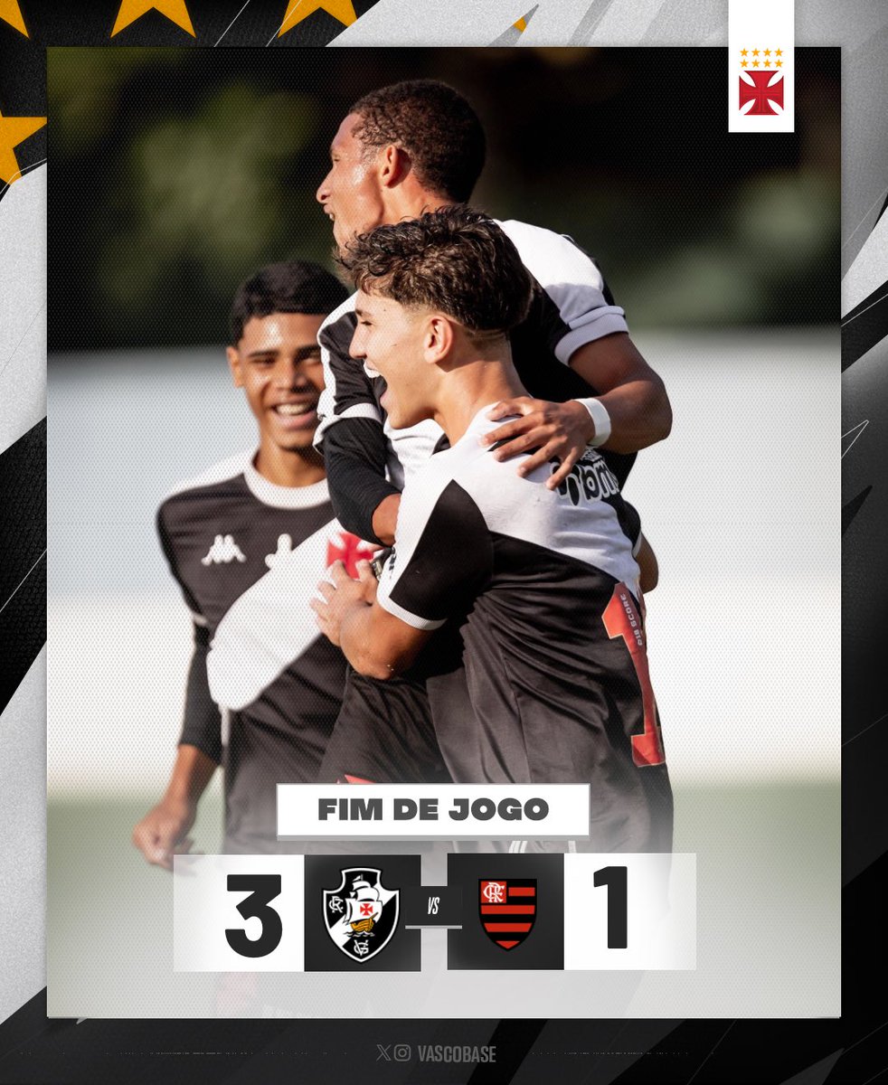 Vasco vence o Flamengo por 3 a 1 pelo jogo de ida da final da Copa Rio Sub-16, no Estádio Nivaldo Pereira. Os gols foram marcados por Kauan Vitor, Diego Minete e Léo Vilela.