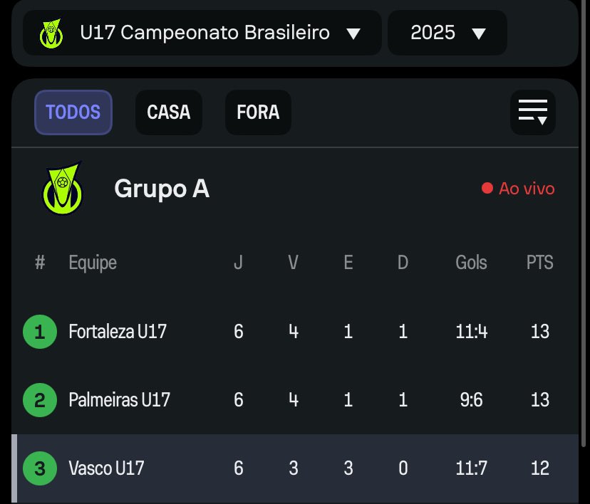 O Sub-17 do Vasco acaba de vencer o Fortaleza, por 1 a 0, pelo Campeonato Brasileiro da categoria. O gol foi marcado pelo volante Luiz Felipe. Com a vitória, o time do técnico Cássio Barros sobe para a 3ª colocação, com 12 pontos e é o único invicto da competição.