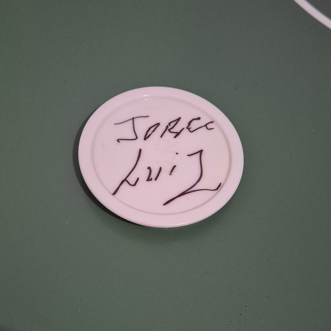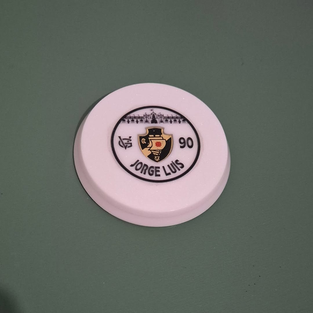 Botão "Jorge Luiz", zagueiro tricampeão estadual 92-93-94 pelo Vasco, autografado na @expovasco1898 neste sábado, dia 21, em São Januário.