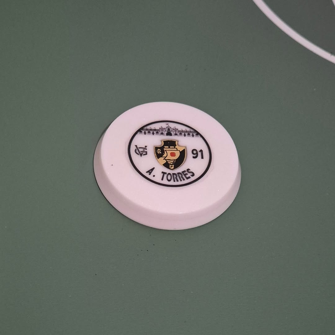 Botão "Alexandre Torres", zagueiro tricampeão estadual 92-93-94 pelo Vasco, autografado na @expovasco1898 neste sábado, dia 21, em São Januário.
