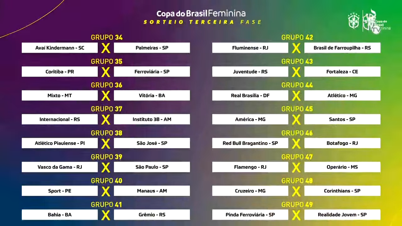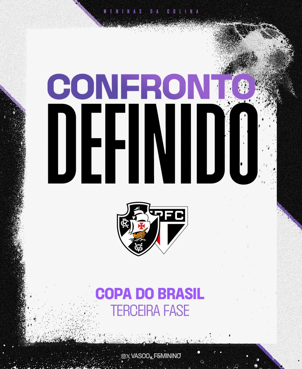 Foram sorteados na tarde desta terça-feira os confrontos da 3ª fase da Copa do Brasil Feminina. O Vasco enfrentará o São Paulo em jogo único a ser realizado com mando vascaíno.