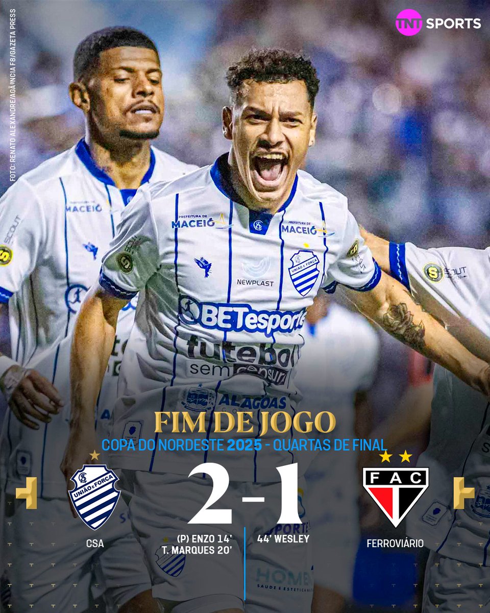 O CSA ESTÁ NAS SEMIS DA LAMPIONS! 🔵 O Azulão do Mutange venceu o Ferroviário por 2 a 1 e se garantiu na próxima fase da #CopaDoNordeste2025