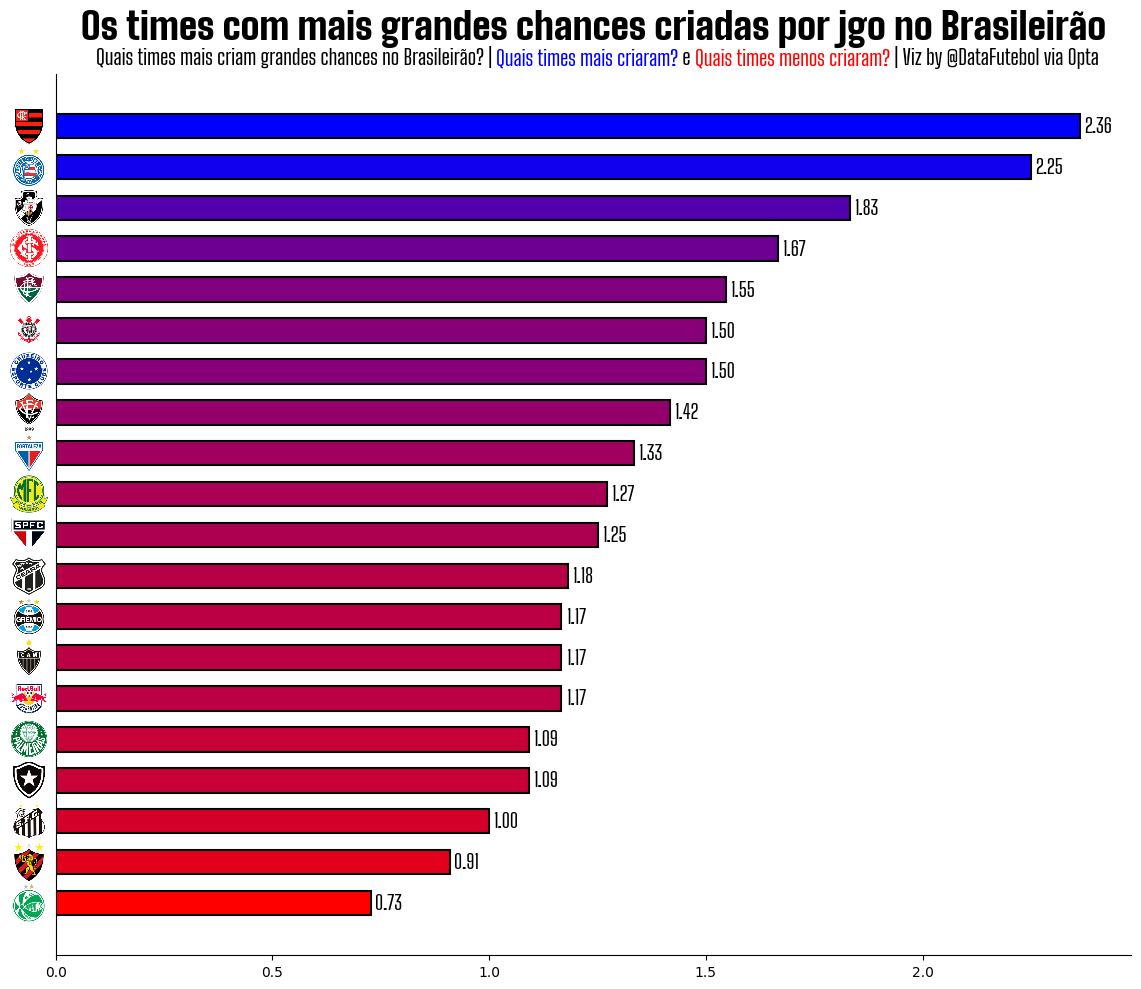 Quais são os times com mais grandes chances criadas por jogo no Brasileirão?