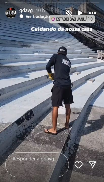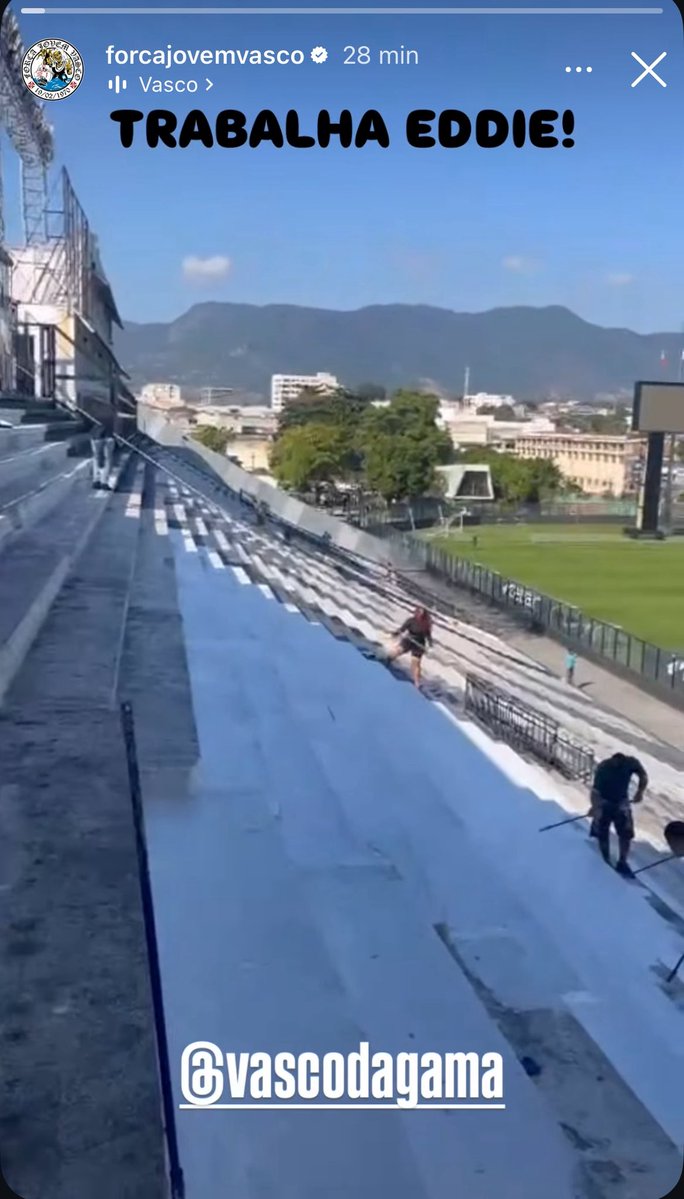 ⚪️💢 Força Jovem do Vasco ajudando na pintura das arquibancadas de São Januário.