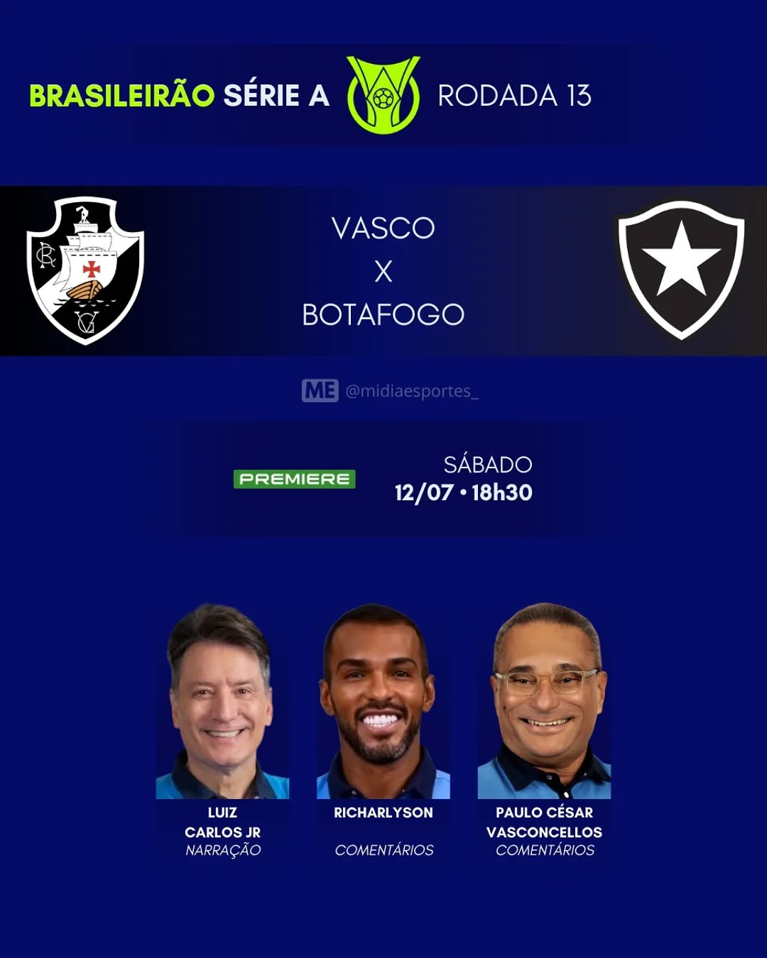 Confira os profissionais que trabalharão na transmissão de Vasco x Botafogo pela TV