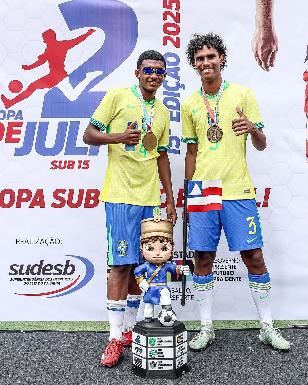 O zagueiro Yuri Domingues e o atacante Rodrigo Jr. foram campeões da Copa 2 de Julho com a Seleção Brasileira Sub-15, neste domingo. Parabéns, crias!