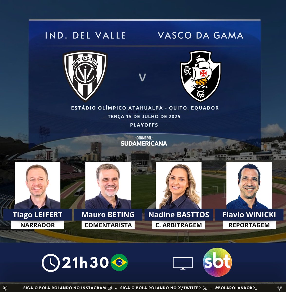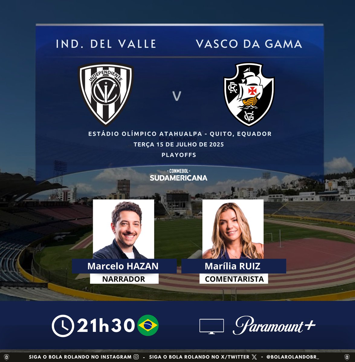 Confira os profissionais que trabalharão na transmissão de Independiente del Valle x Vasco pela TV