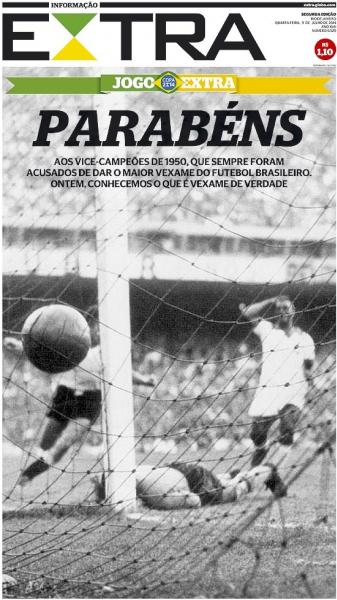 Até 8 de julho de 2014, a derrota do Brasil para o Uruguai por 2 a 1, no Maracanã, em 16 de julho de 1950, na final da Copa do Mundo, era considerada a maior do futebol brasileiro em todos os tempos. Como consequência disso, os jogadores daquela Seleção Brasileira, boa parte deles vascaínos do Expresso da Vitória (5 dos 11 titulares e 8 dos 22 inscritos, incluindo o capitão Augusto, o artilheiro da competição Ademir e o treinador Flavio Costa), foram execrados por décadas. Chegou, porém, a Copa do Mundo de 2014, também em nosso país, e a Seleção Brasileira protagonizou um vexame sem precedentes ao ser goleada por 7 a 1 pela Alemanha na semifinal. Esse jogo, chamado de "Mineirazo", ou "Mineiratzen", superou em muito o "Maracanazo" de 1950 e fez a sociedade e a mídia absolverem a Seleção de 1950 e seu goleiro, o vascaíno Moacyr Barbosa (falecido em 2000 aos 79 anos), como mostram as capas das edições de 9 de julho de 2014 de alguns jornais (veja abaixo).