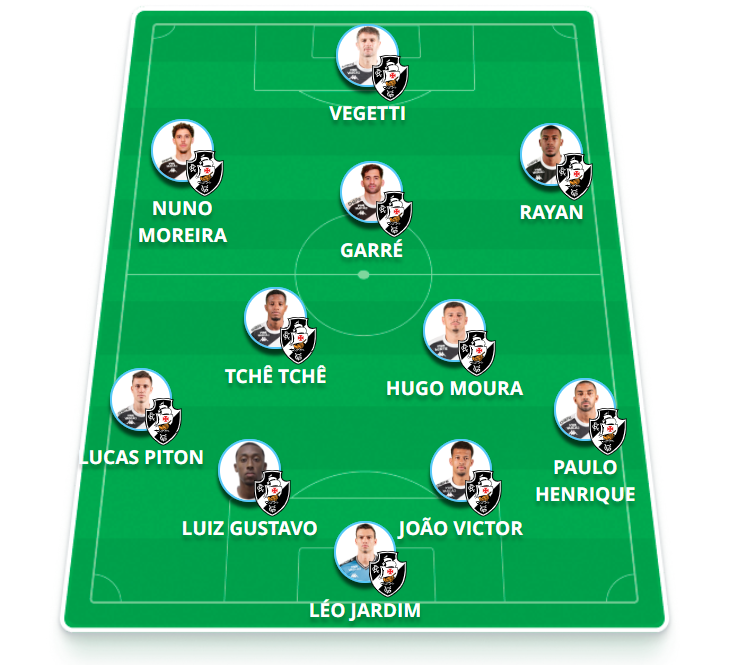 Provável escalação: Léo Jardim, Paulo Henrique, João Victor, Luiz Gustavo (Lucas Freitas), Lucas Piton, Hugo Moura, Tchê Tchê, Garré (Alex Teixeira ou Estrella), Nuno Moreira, Rayan e Vegetti.