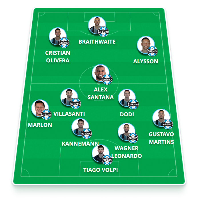 Provável escalação: Tiago Volpi; Gustavo Martins, Wagner Leonardo, Kannemann e Marlon; Dodi, Villasanti, Alysson, Alex Santana (Edenilson) e Cristian Olivera; Braithwaite.