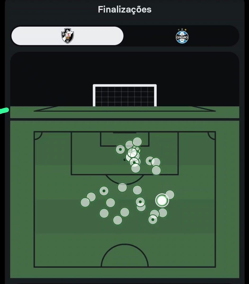 Contra o Grêmio, Vasco teve o maior número de finalizações em jogo do Brasileiro em toda a base do Sofascore