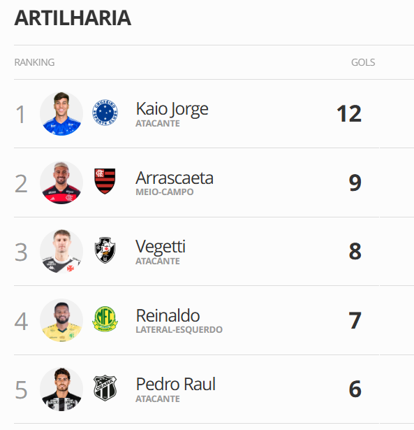 Fonte: NETVASCO (texto), ge (artilharia)