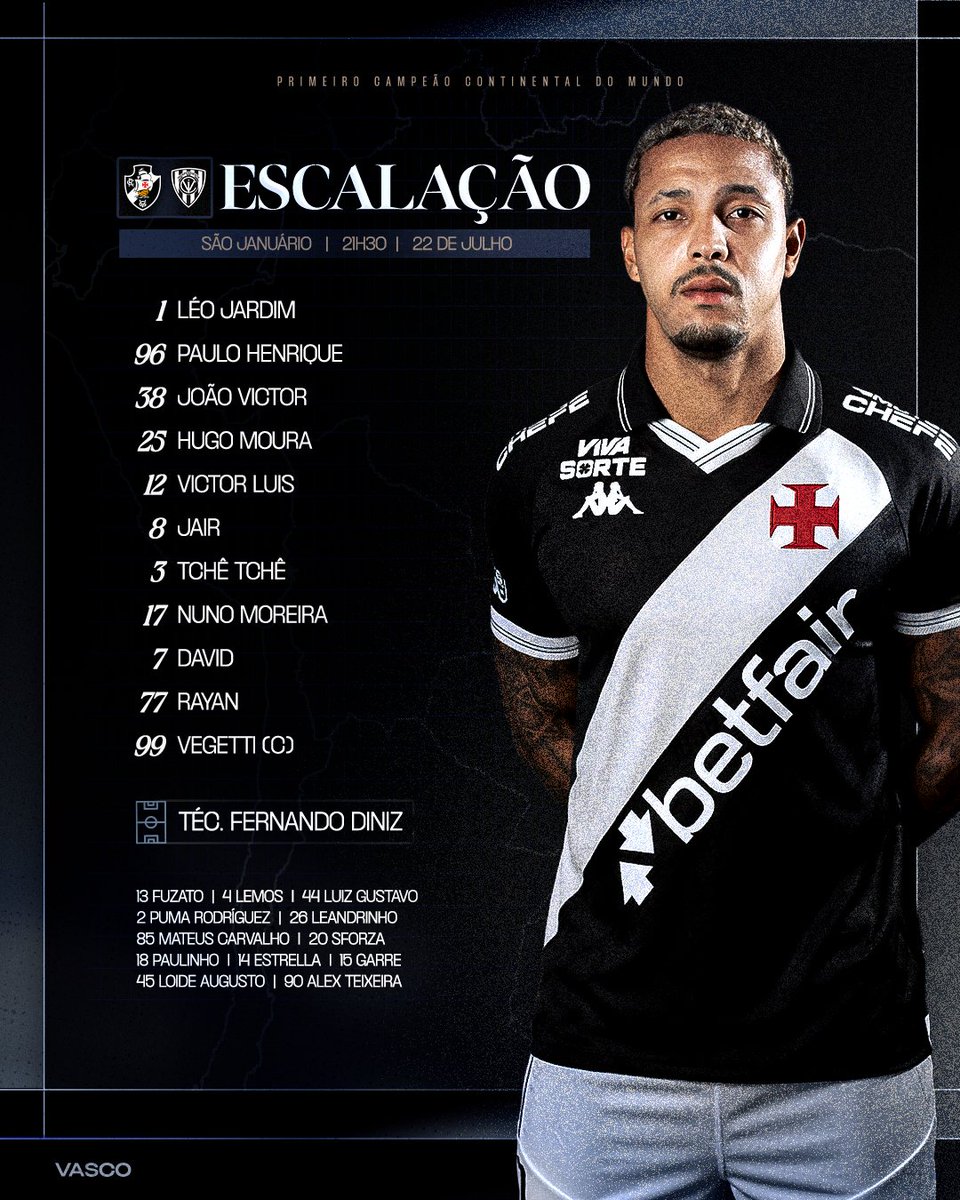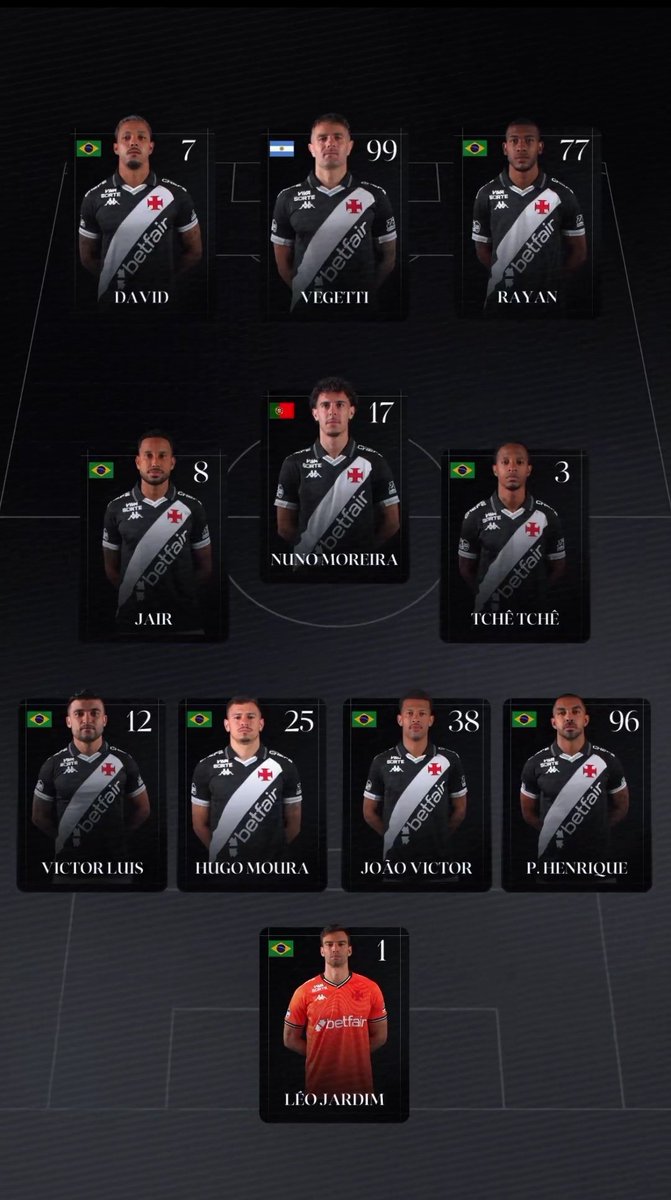 🚨 A distribuição tática do time titular do VASCO para a decisão contra o Del Valle.