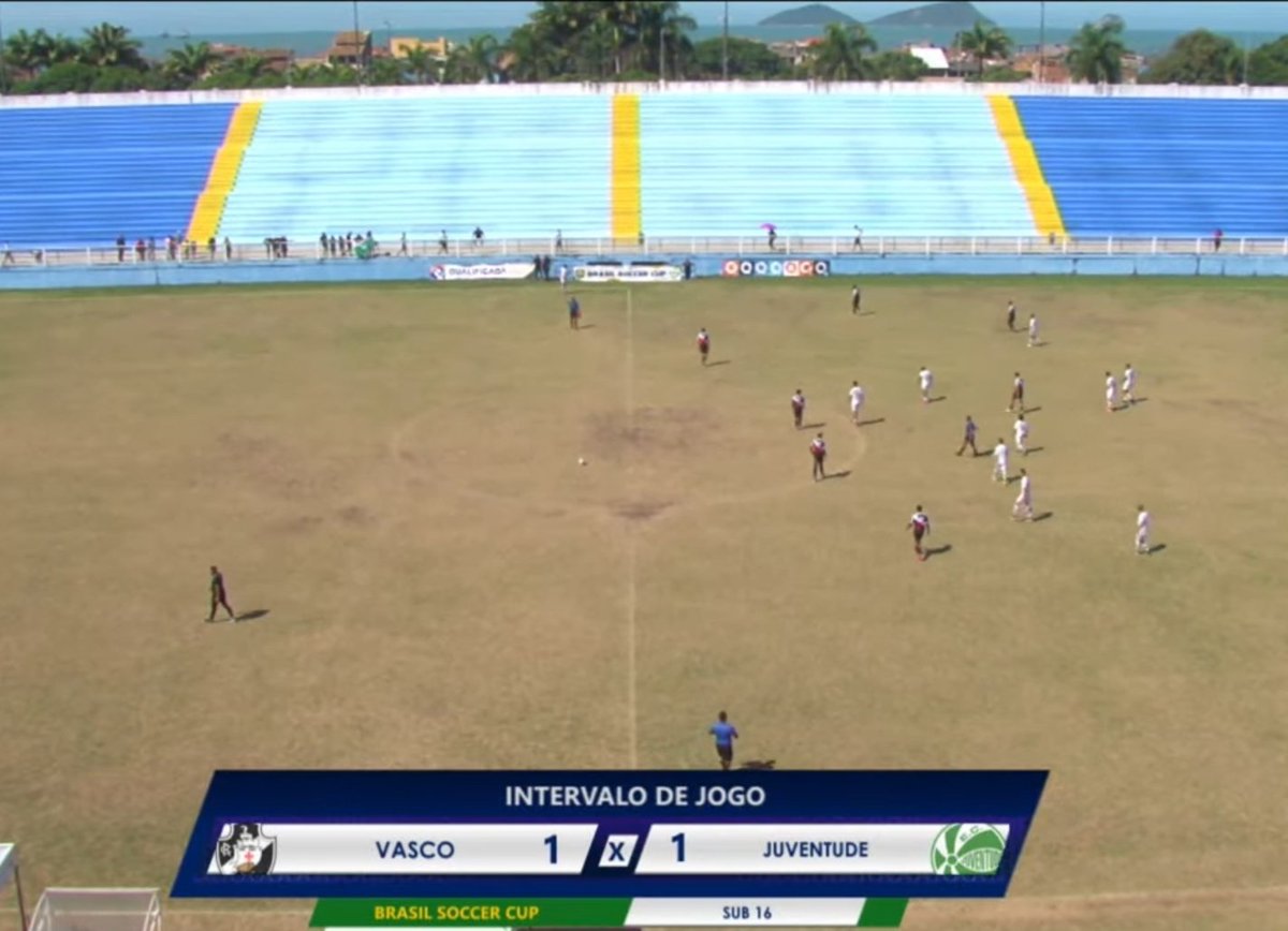 Pela decisão da Brasil Soccer Cup Sub-16, Vasco e Juventude vão empatando em 1 a 1. O Vasco saiu na frente com Guilherme, mas levou o empate com Nathan (bom jogador). O time gaúcho foi melhor até agora. Jogo realizado no Moacyrzão, em Macaé.