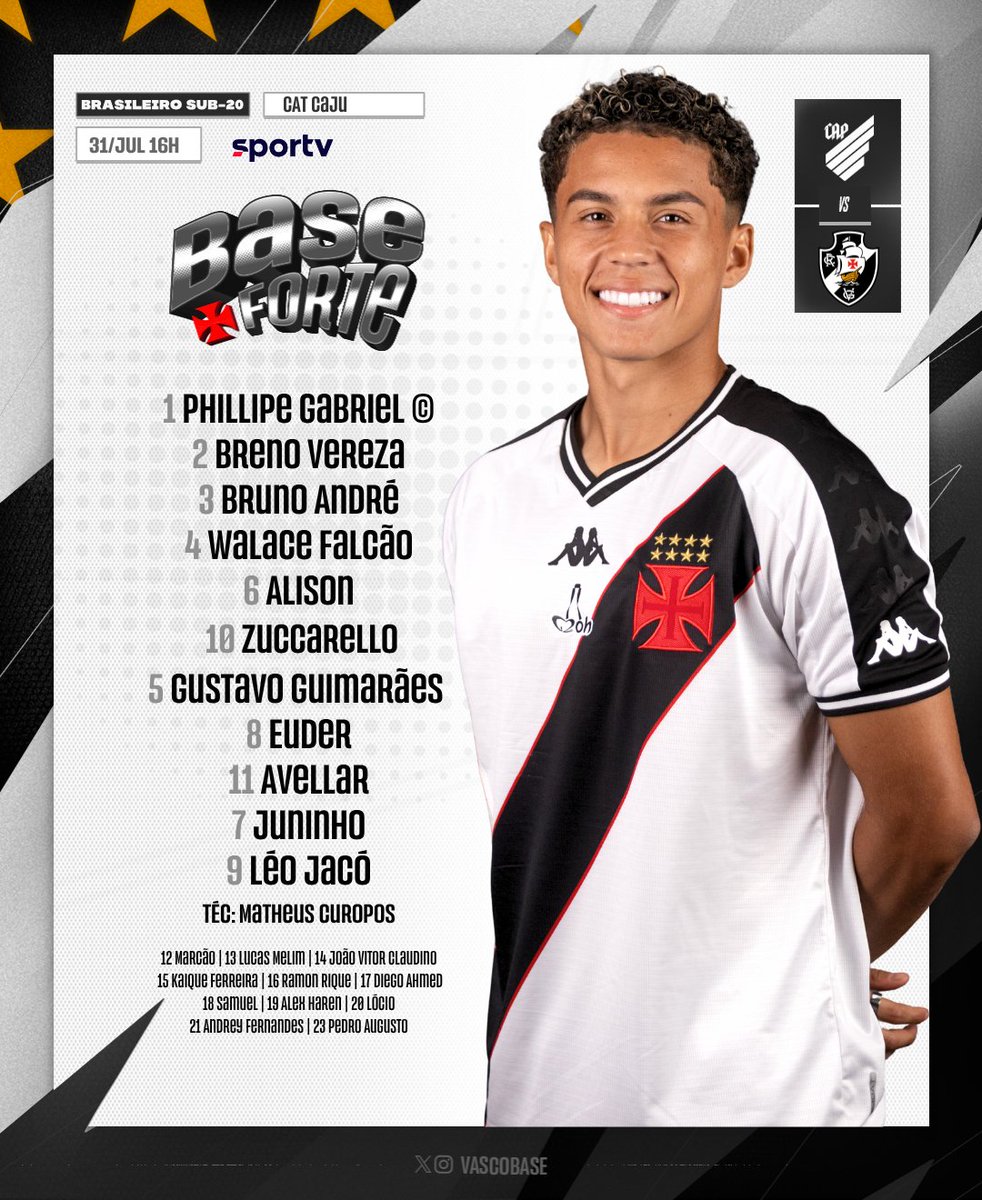 Sub-20: Confira a escalação do Vasco para o jogo contra o Athletico-PR
