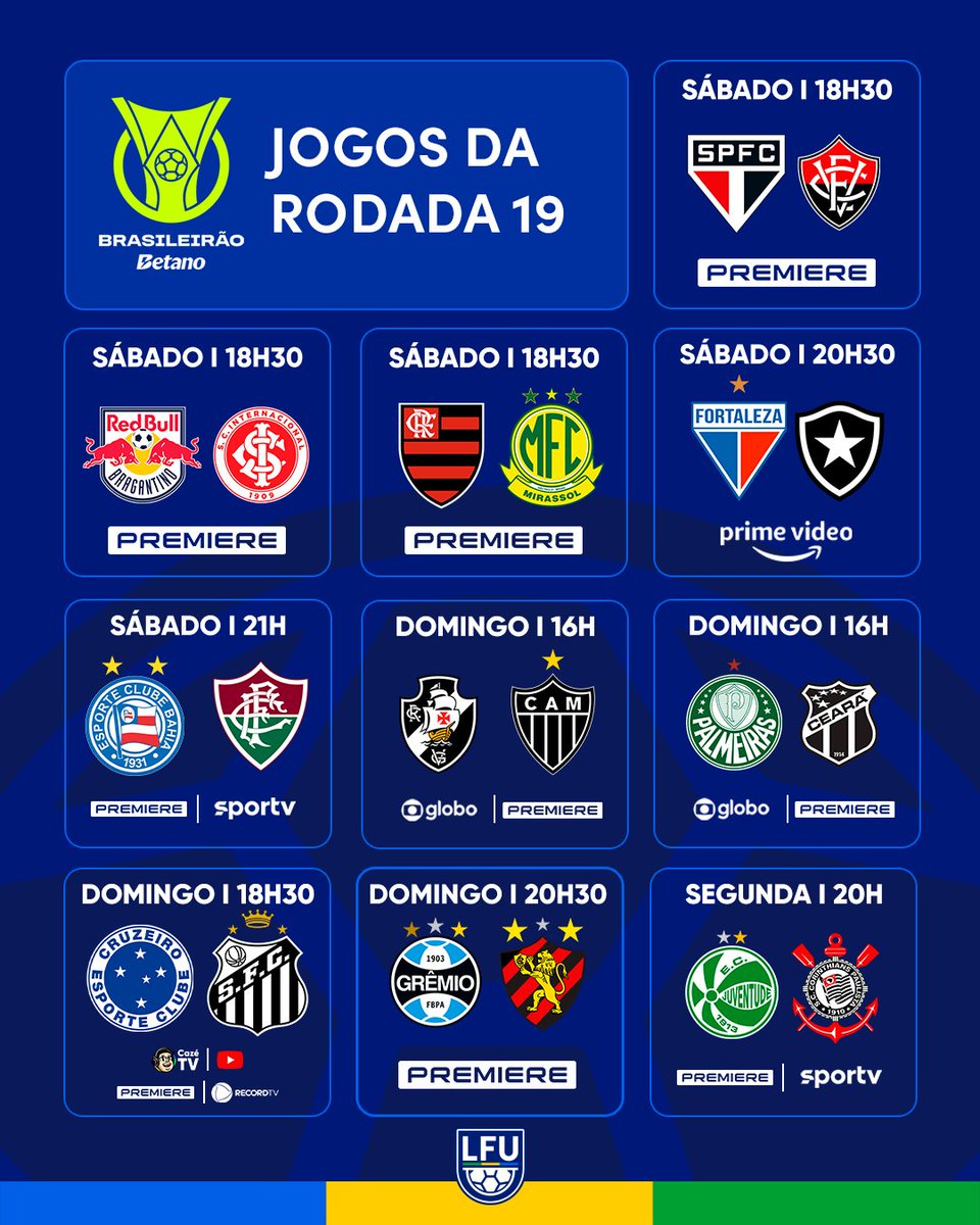 Se liga em todos os jogos e transmissões da rodada 19 do Brasileirão!