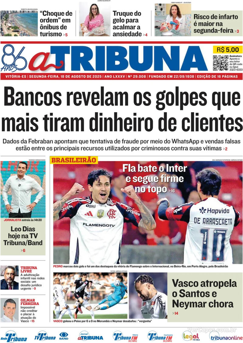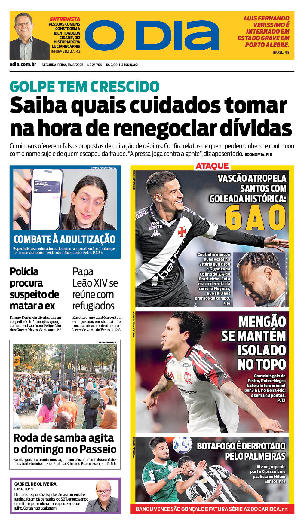 Veja as capas dos jornais após Santos 0 x 6 Vasco