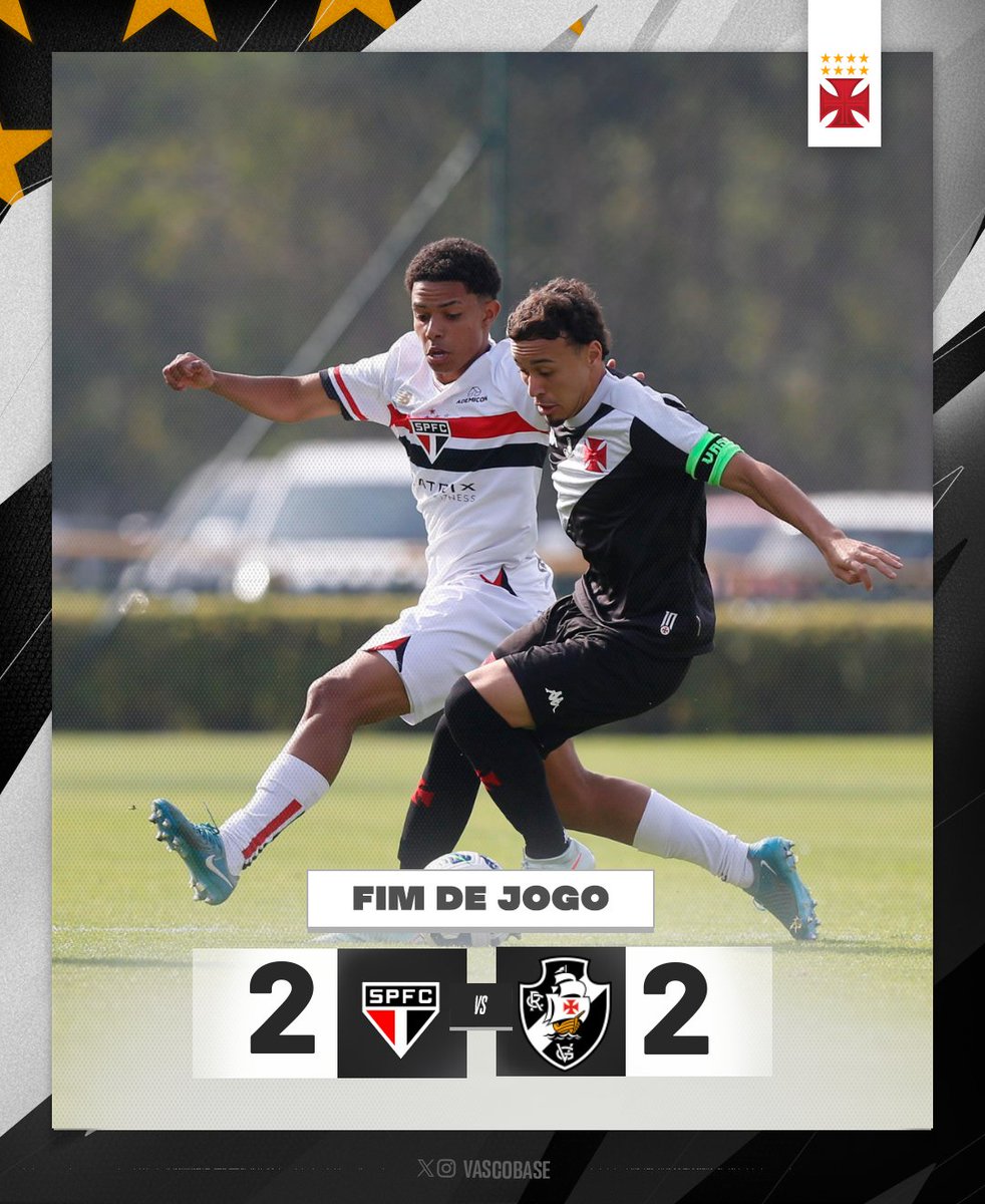 Vasco empata em 2 a 2 com o São Paulo pela 15ª rodada do Campeonato Brasileiro sub-17. Os gols cruzmaltinos foram marcados por Medina e João Vitor Cardoso!