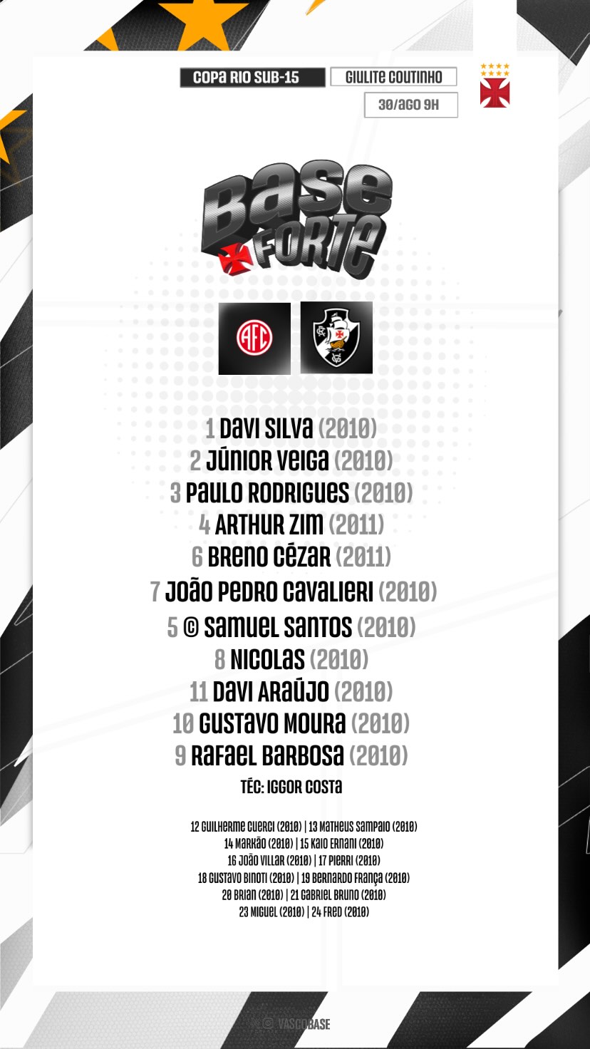 Sub-15: Confira a escalação do Vasco para o jogo contra o America