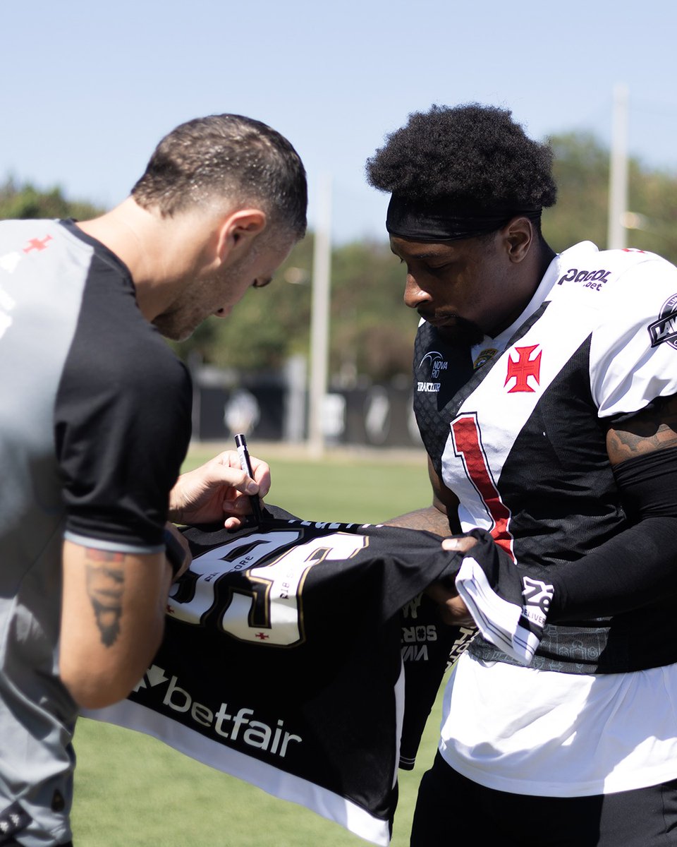 No dia de @NFLBrasil em solo brasileiro, recebemos os atletas do @VascoAlmirantes no CT Moacyr Barbosa para uma interação com o elenco vascaíno! 🇺🇸🏈💢