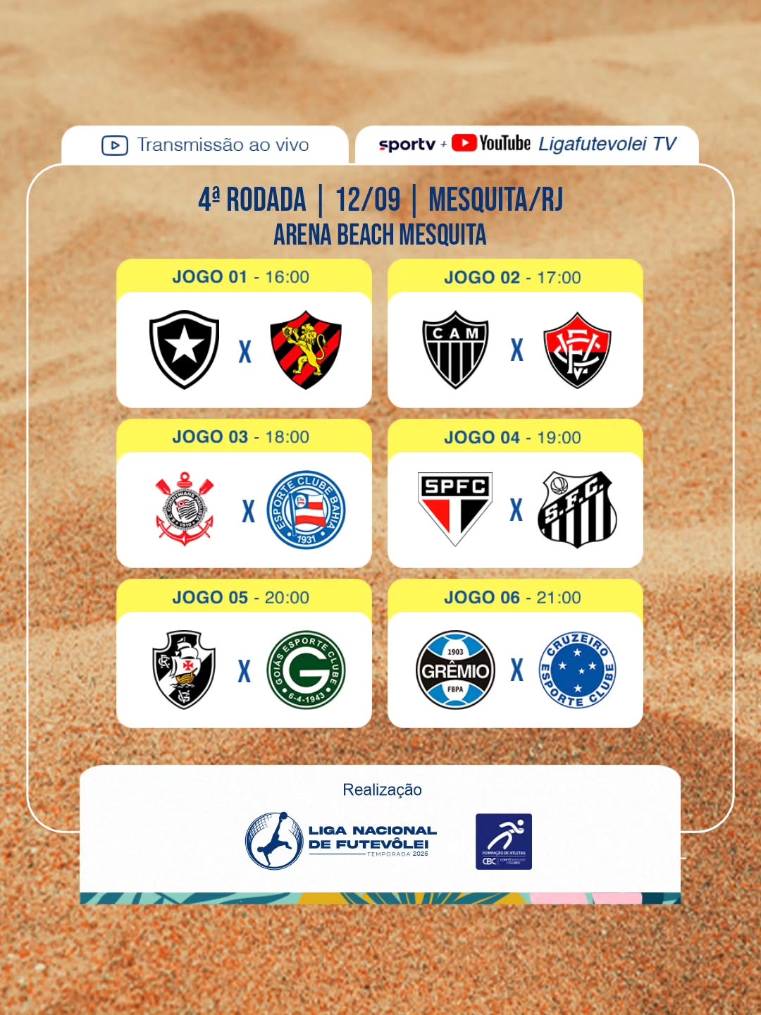 Depois da rodada histórica de estreia, a Liga Nacional de Futevôlei tá de volta pra mais um show na areia! 💥