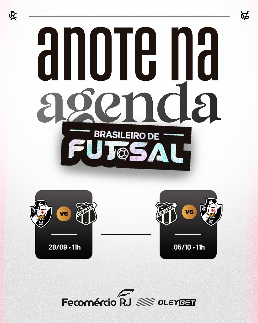 Futsal: CBFS divulga as datas dos confrontos entre Vasco e Ceará pelas oitavas do Brasileiro