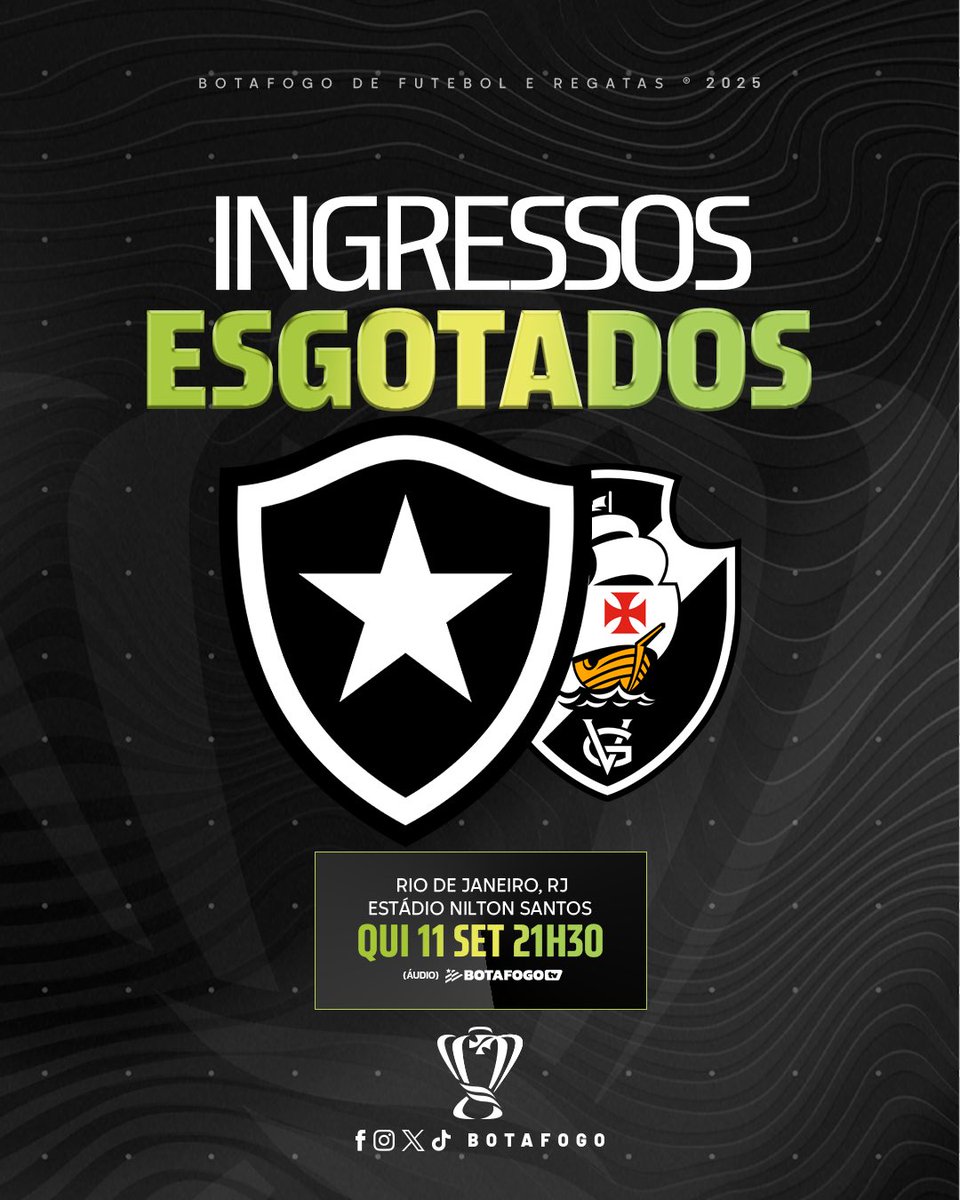 Botafogo informa que os ingressos para o jogo contra o Vasco estão esgotados