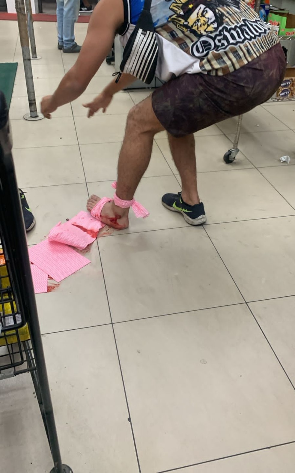 Pelas imagens, é possível ver que um dos feridos entra em um mercado após ser atingido no pé. Ele usava uma camisa da torcida Força Jovem Vasco.
