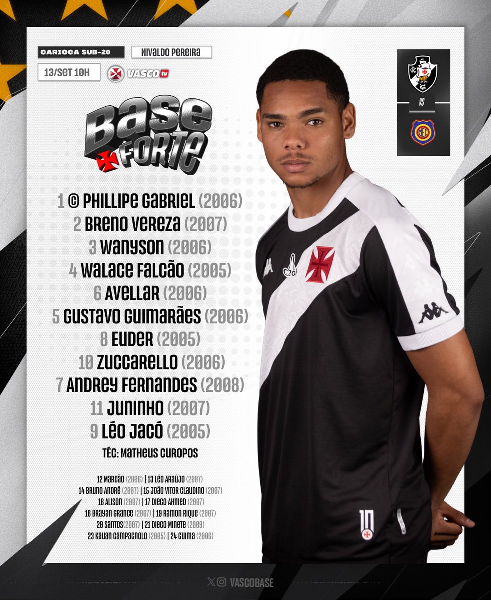 ☑️ Sub-20 escalado para enfrentar o Madureira em jogo válido pelo Carioca na manhã deste sábado 💢