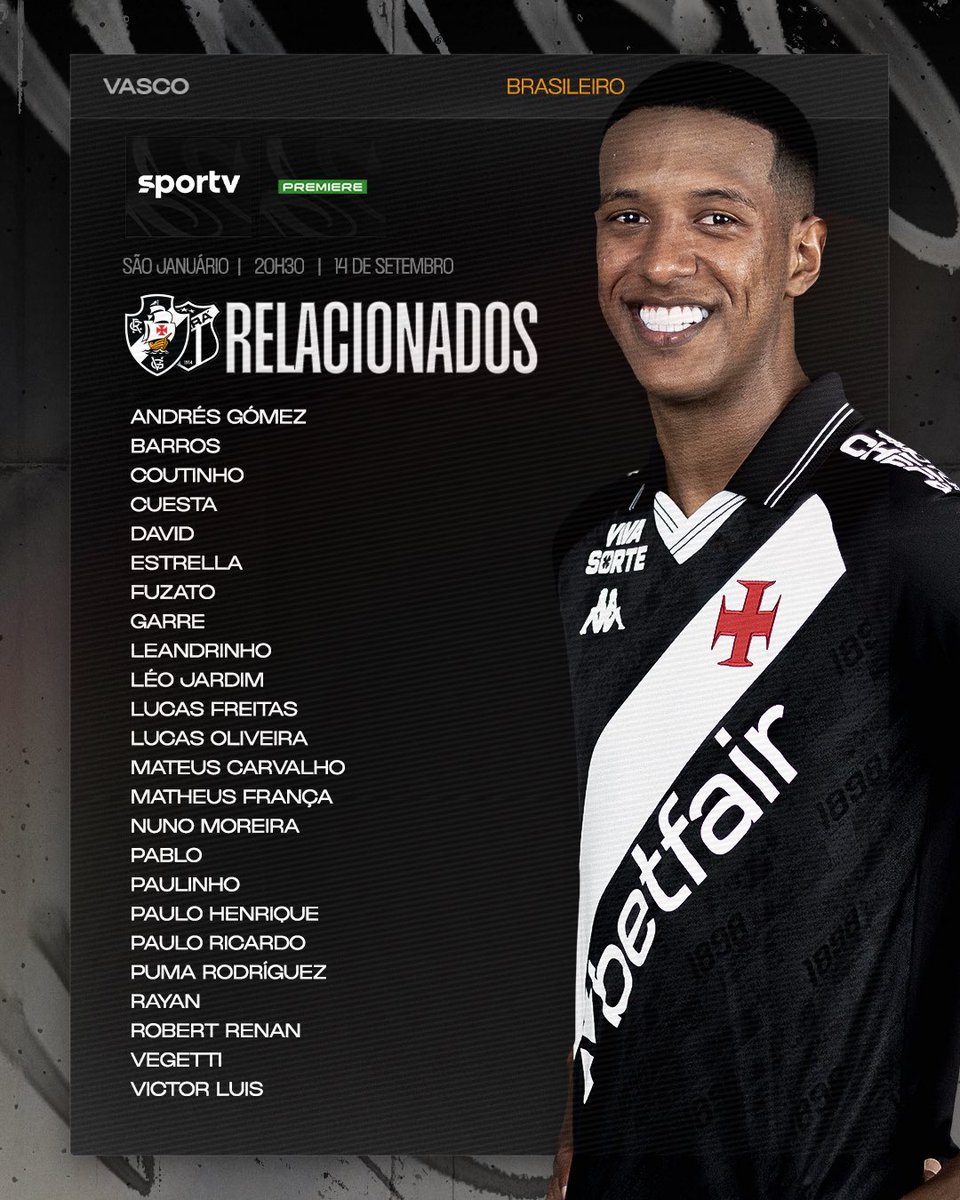 📋 Relacionados do Vasco da Gama para a partida diante do Ceará 💢