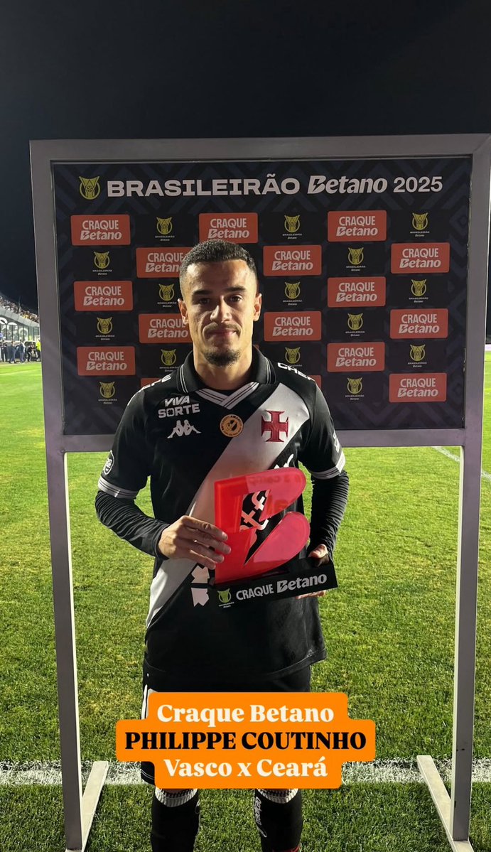 Philippe Coutinho é eleito o 'Craque Betano' de Vasco 2 x 2 Ceará