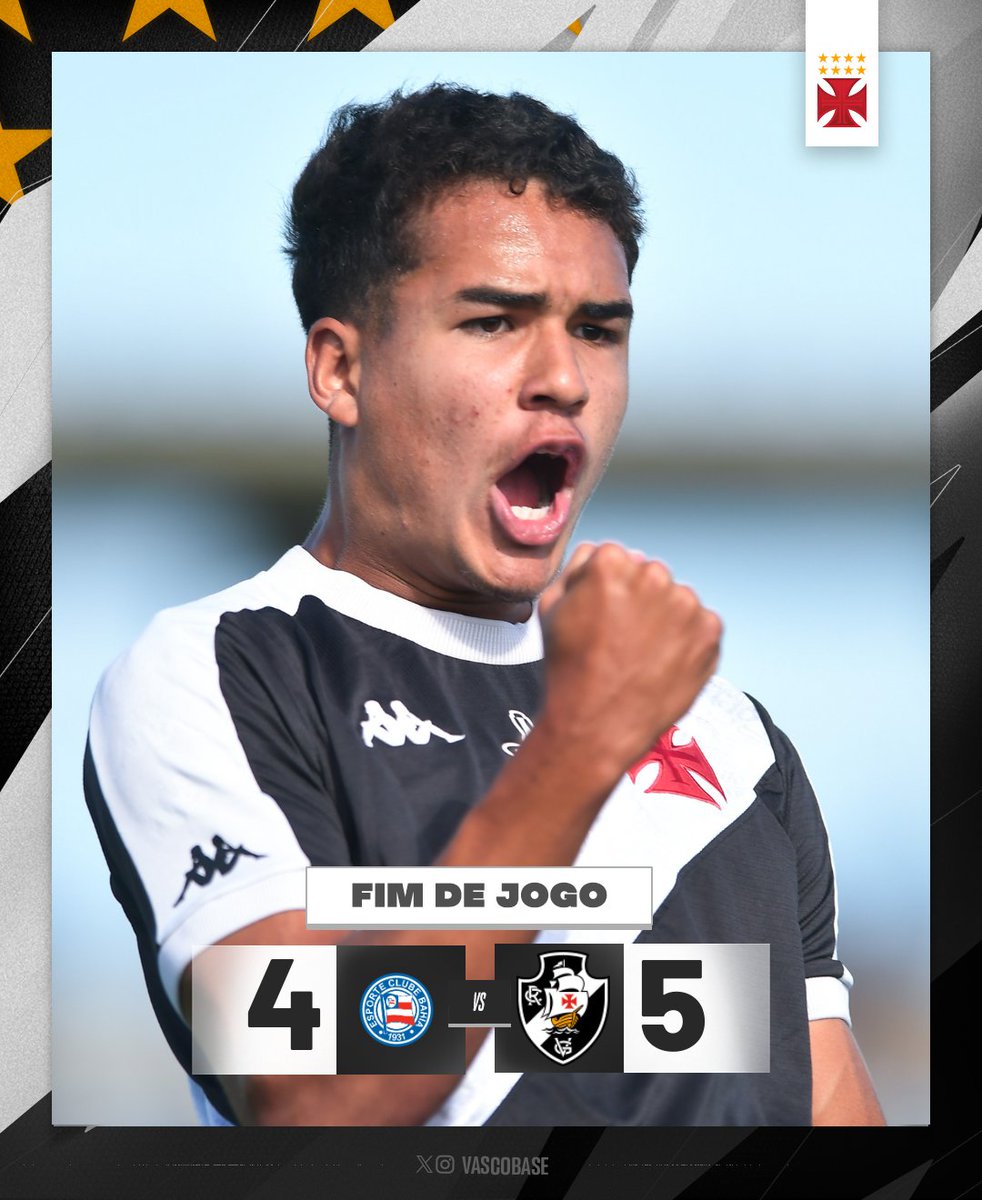Na tarde desta terça-feira (16), a equipe Sub-17 do Vasco da Gama venceu o Bahia por 5 a 4, pela 18ª rodada do Campeonato Brasileiro Sub-17, no CT Evaristo de Macedo. Os gols cruzmaltinos foram marcados por Pedro Augusto, Medina, Luis Felipe, Kaique Ferreira e Breno Sales. Com o resultado, o Gigante da Colina chegou aos 32 pontos e ocupa a 5ª colocação na tabela.