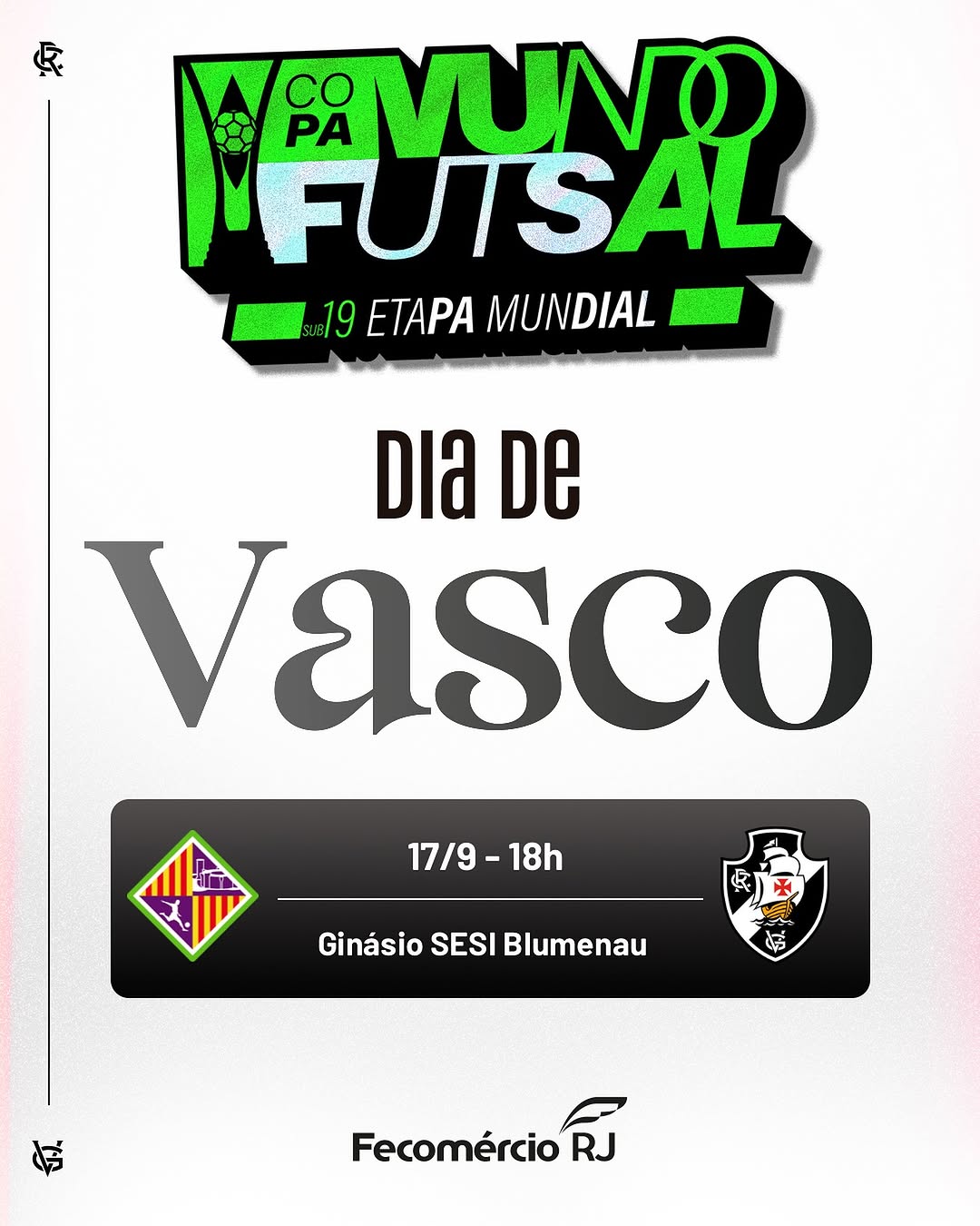 Futsal Base: Vasco enfrenta o Palma-ESP nesta 4ª-feira às 18h pela Copa Mundo do Futsal Sub-19 com Youtube