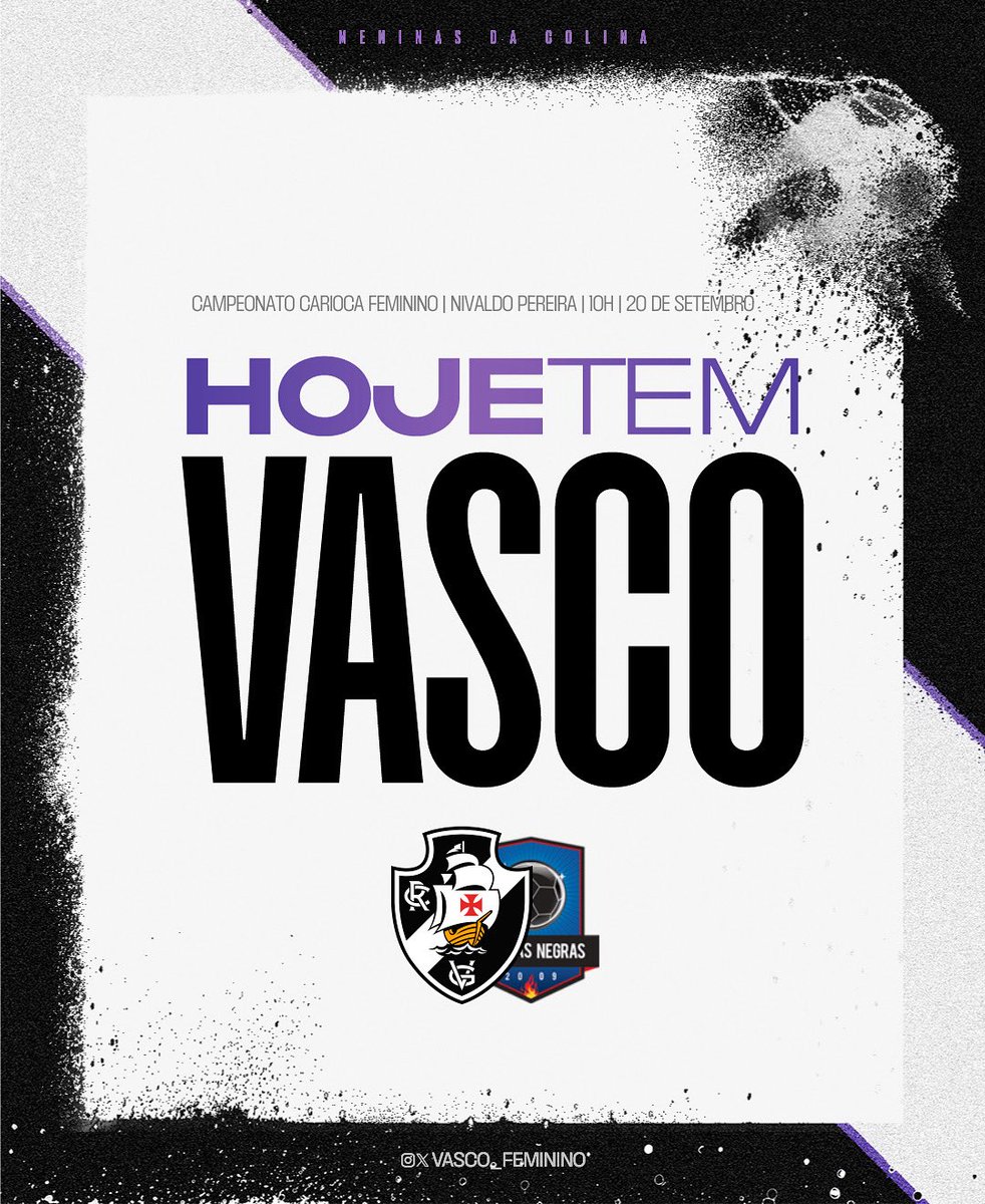 Hoje tem #MeninasDaColina em campo para a estreia no Campeonato Carioca, diante do Pérolas Negras, no estádio Nivaldo Pereira, às 10h. Acompanhe a partida AO VIVO e COM IMAGENS na VascoTV, pelo Youtube! 💢