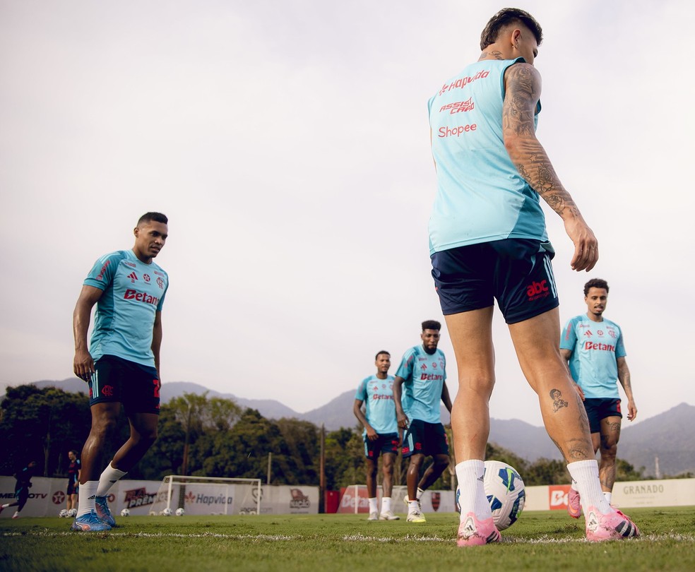 Uma provável escalação do Flamengo tem: Rossi, Varela, Léo Ortiz, Léo Pereira e Ayrton Lucas; Allan, De La Cruz (Saúl) e Arrascaeta; Plata, Samuel Lino e Pedro.