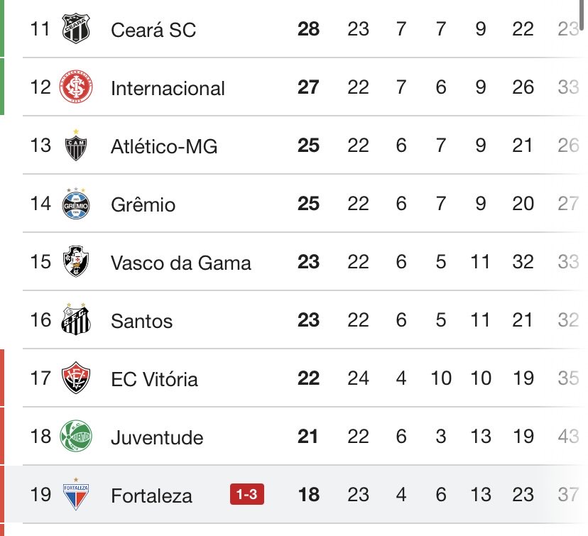 Fortaleza (18°) - Perdeu ❌