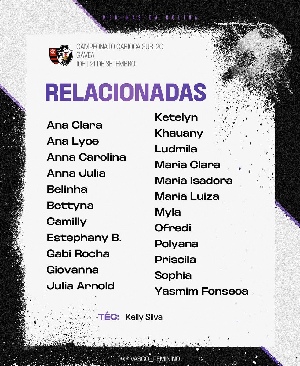 Feminino Base: Confira as relacionadas do Vasco para o jogo contra o Urubu pelo Carioca Sub-20