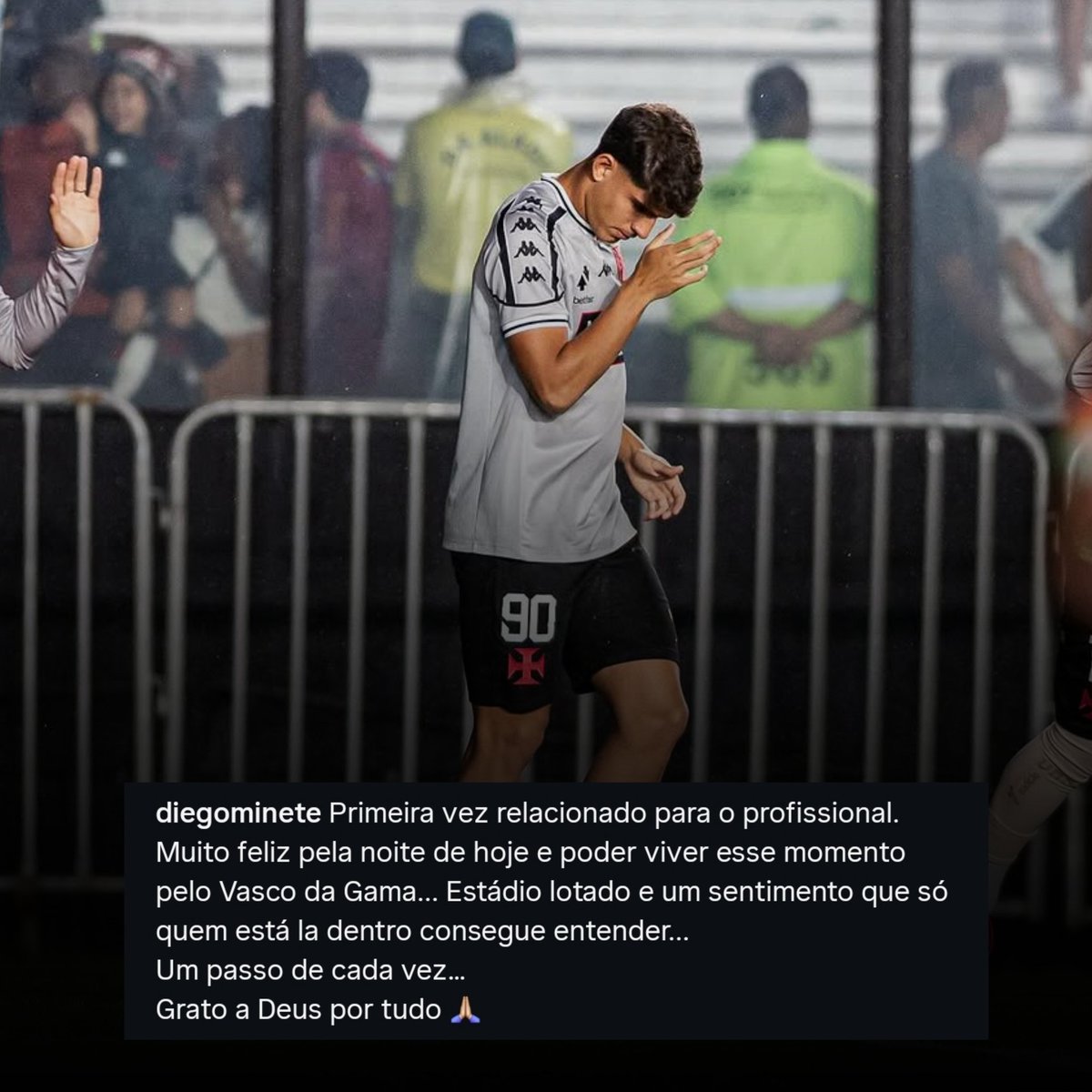 O cria Diego Minete celebrou a primeira relação ao time profissional no seu Instagram.