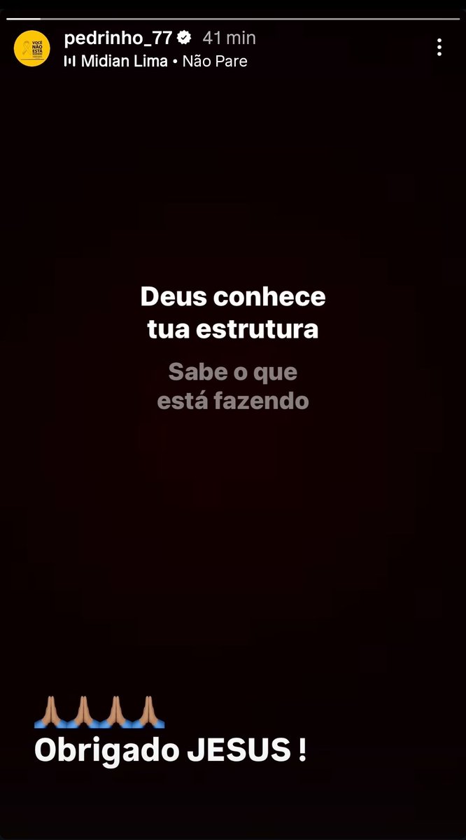 Presidente Pedrinho fez essa postagem há 41 minutos em seu Instagram.