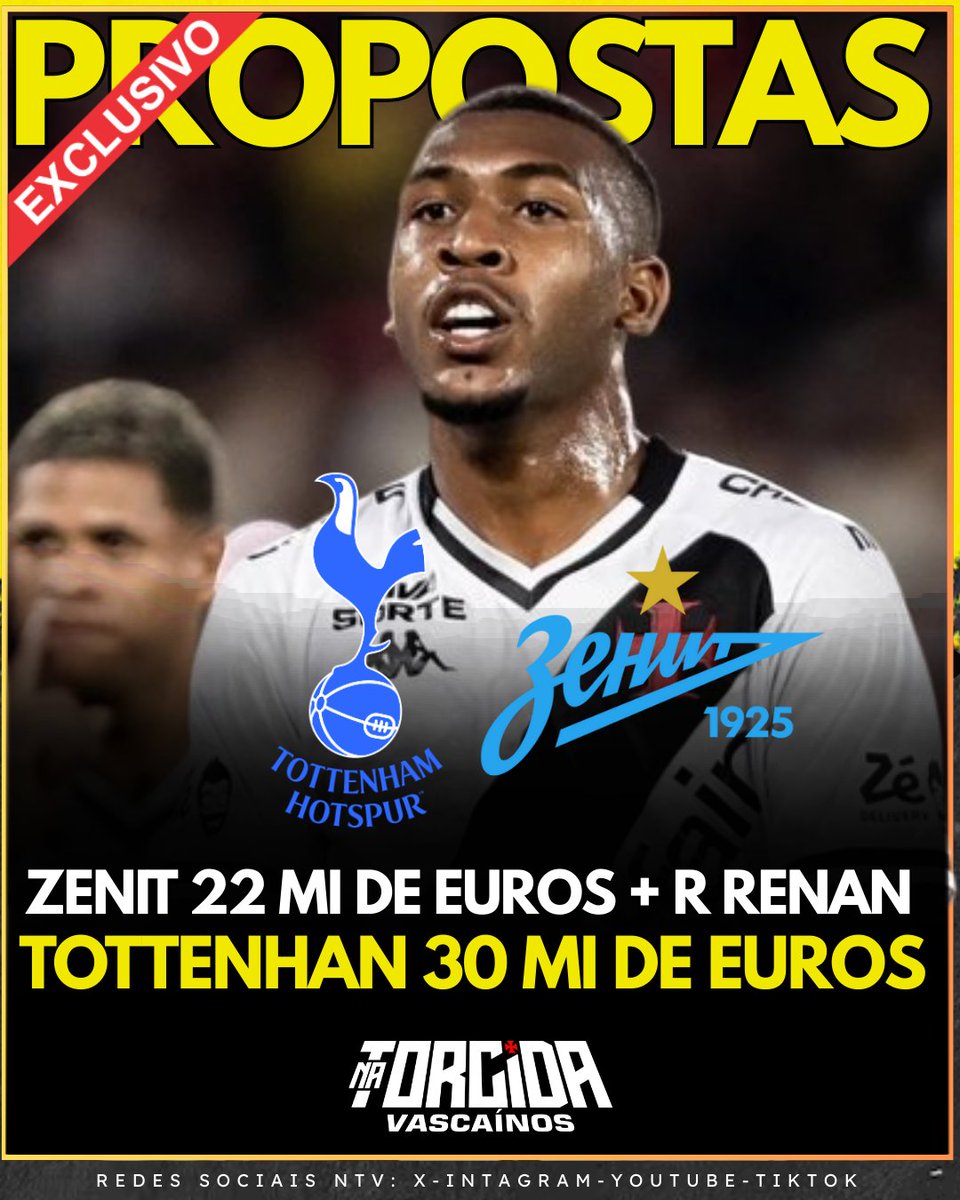 Além disso, o Tottenham, da Inglaterra, também se movimenta e deve formalizar uma oferta de 30 milhões de euros pelo jovem atacante vascaíno.