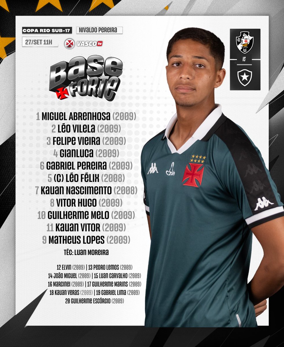 ☑️ Sub-17 escalado para enfrentar o Botafogo pela 8° rodada da Copa Rio!
