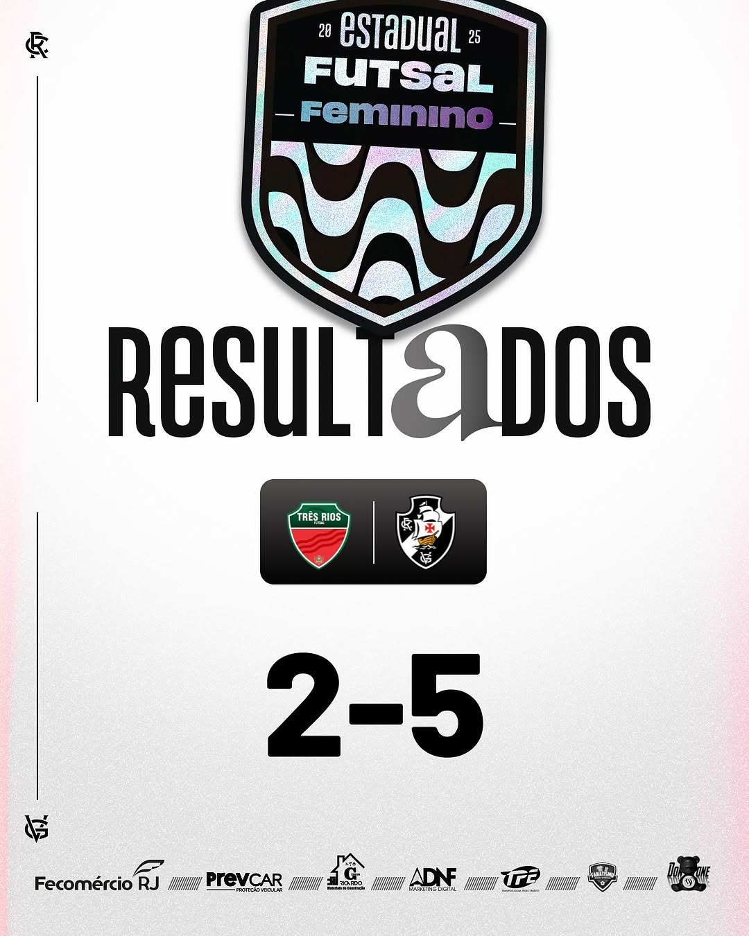 Pela 3ª rodada do Estadual de futsal feminino, o Vasco venceu o Três Rios, fora de casa, por 5x2! 💪