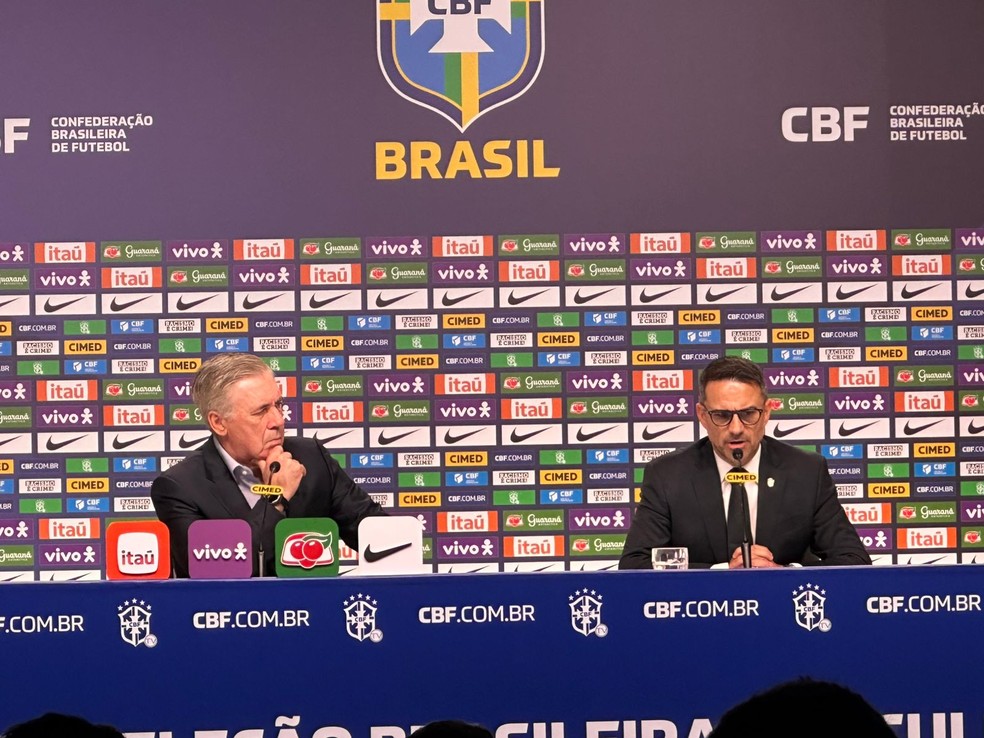 O técnico Carlo Ancelotti anunciou nesta quarta-feira sua terceira convocação no comando da seleção brasileira. Na sede da CBF, no Rio de Janeiro, o treinador divulgou a lista para os amistosos de outubro contra a Coreia do Sul e o Japão. Entre os destaques, o retorno da dupla do Real Madrid Rodrygo e Vini Jr.