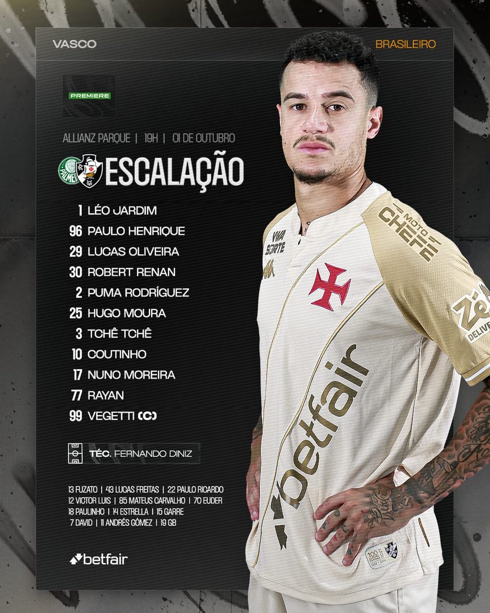O 𝐕𝐚𝐬𝐜𝐨 𝐝𝐚 𝐆𝐚𝐦𝐚 está escalado para enfrentar o Palmeiras, fora de casa, pelo Campeonato Brasileiro! 📋💢