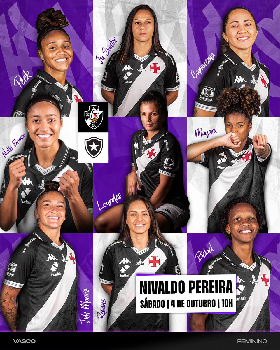 Neste sábado (04), as #MeninasDaColina entram em campo diante do Botafogo, às 10h, no estádio Nivaldo Pereira. A transmissão do clássico será realizada pela VascoTV, no Youtube. De Vascaíno para Vascaíno! 🫡🤝 𝐕𝐀𝐌𝐎𝐒!