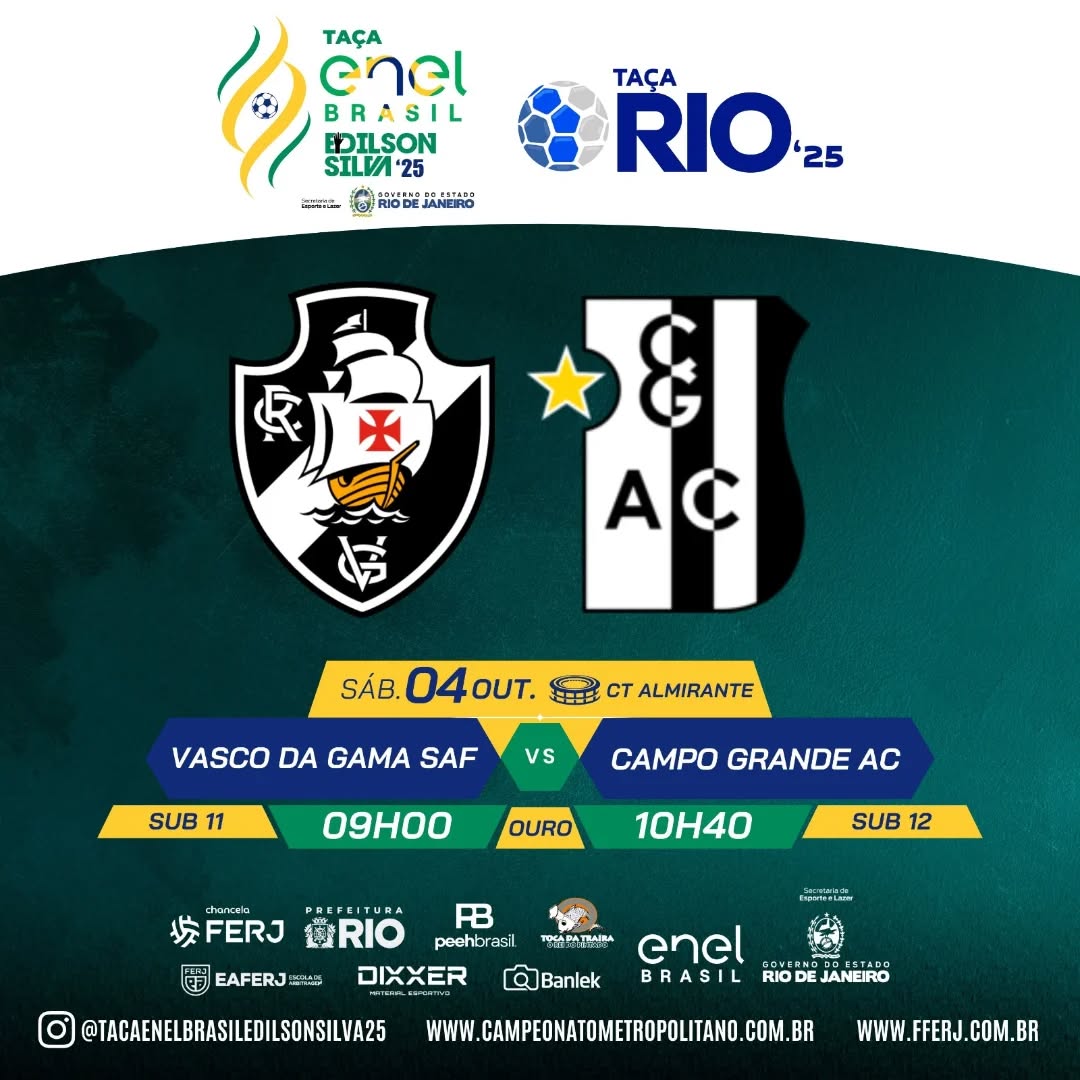 Vasco enfrenta o Campo Grande neste sábado pela Taça Rio Sub-11 e Sub-12