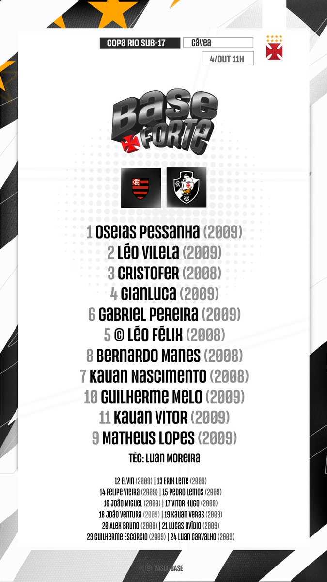 ☑️ Sub-17 escalado para enfrentar o Flamengo pela 9° rodada da Copa Rio!