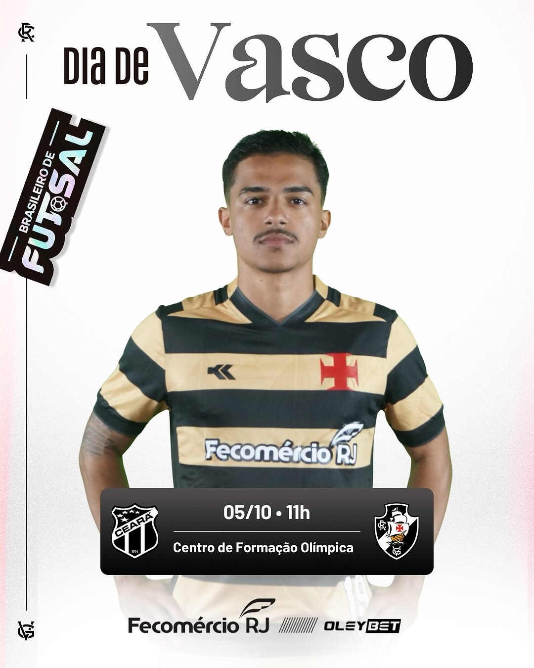 Hoje (5), às 11h, o Vasco enfrenta o Ceará, fora de casa, pelo jogo da volta das oitavas de final do Brasileiro de futsal. A primeira partida foi 1x1.